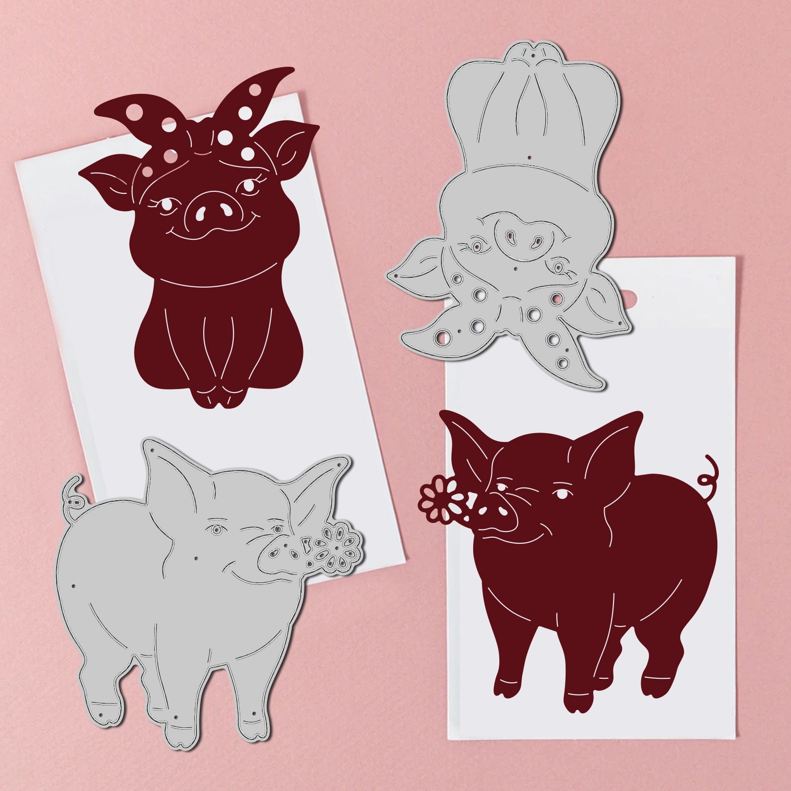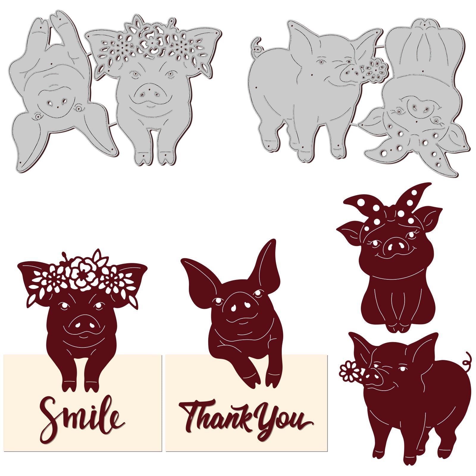 2Pcs 2 Styles Carbon Steel Cutting Dies Stencils, for DIY Scrapbooking, Photo Album, Decorative Embossing Paper Card, Stainless Steel Color, Pig Pattern