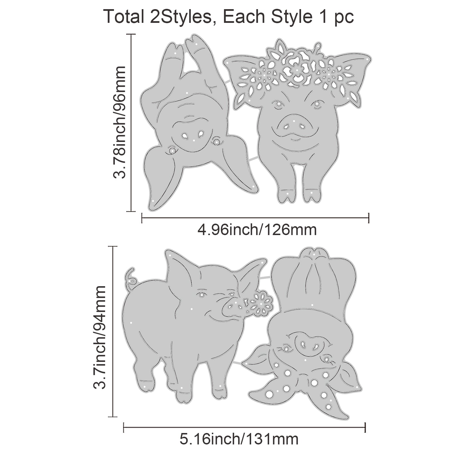 CRASPIRE 2Pcs 2 Styles Carbon Steel Cutting Dies Stencils, for DIY Scrapbooking, Photo Album, Decorative Embossing Paper Card, Stainless Steel Color, Pig Pattern, 94~96x126~131x0.8mm, 1pc/style