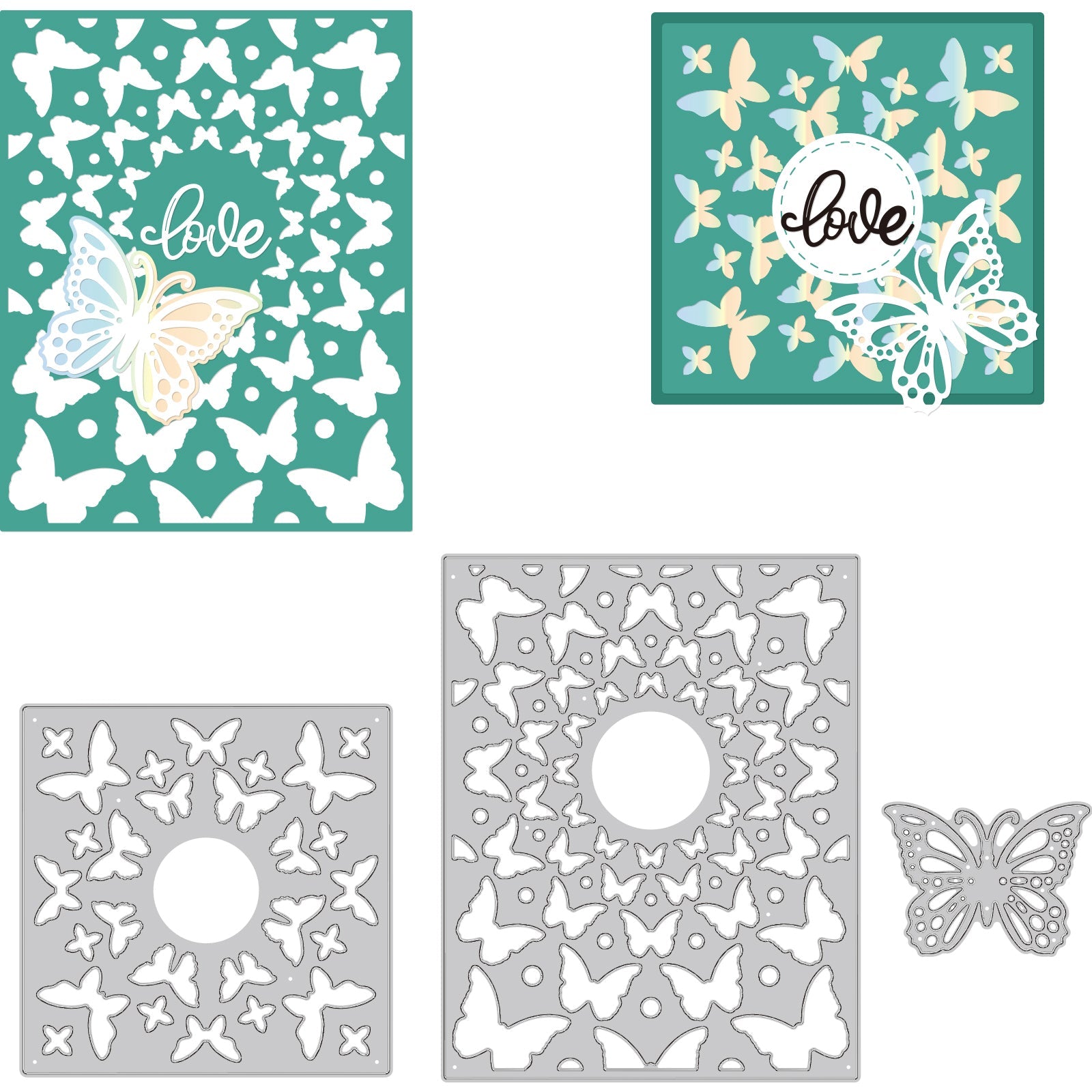 3Pcs 3 Styles Carbon Steel Cutting Dies Stencils, for DIY Scrapbooking, Photo Album, Decorative Embossing Paper Card, Stainless Steel Color, Butterfly Pattern