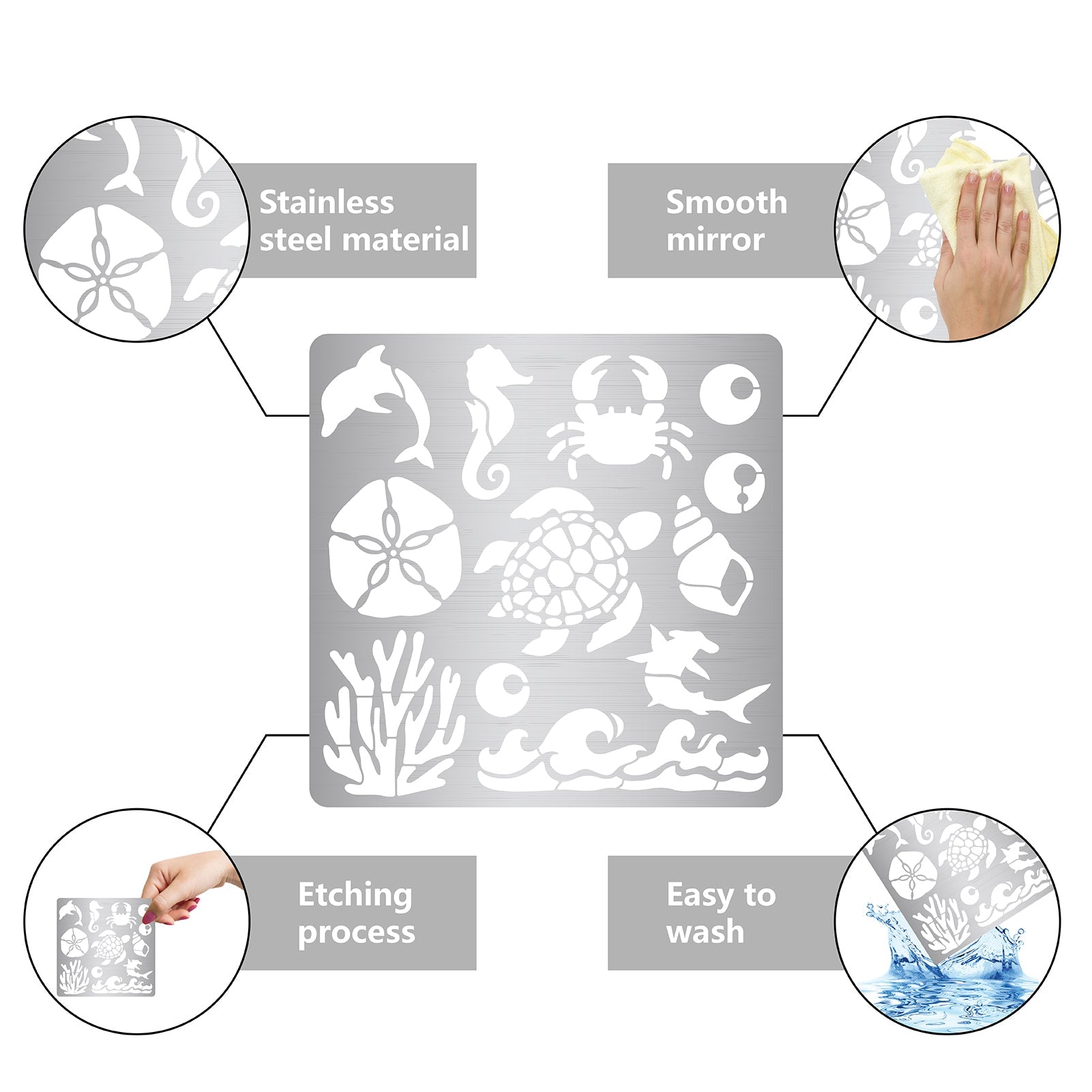 CRASPIRE Stainless Steel Cutting Dies Stencils, for DIY Scrapbooking/Photo Album, Decorative Embossing DIY Paper Card, Matte Stainless Steel Color, Sea Animals, 16x16cm