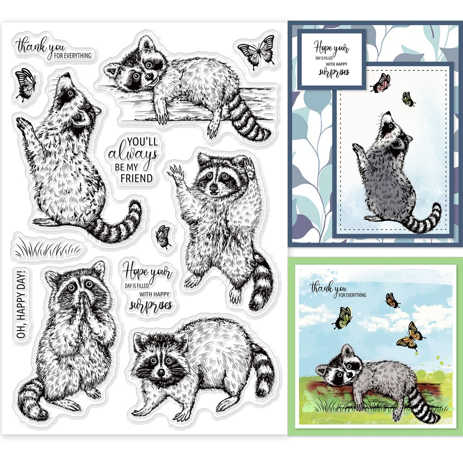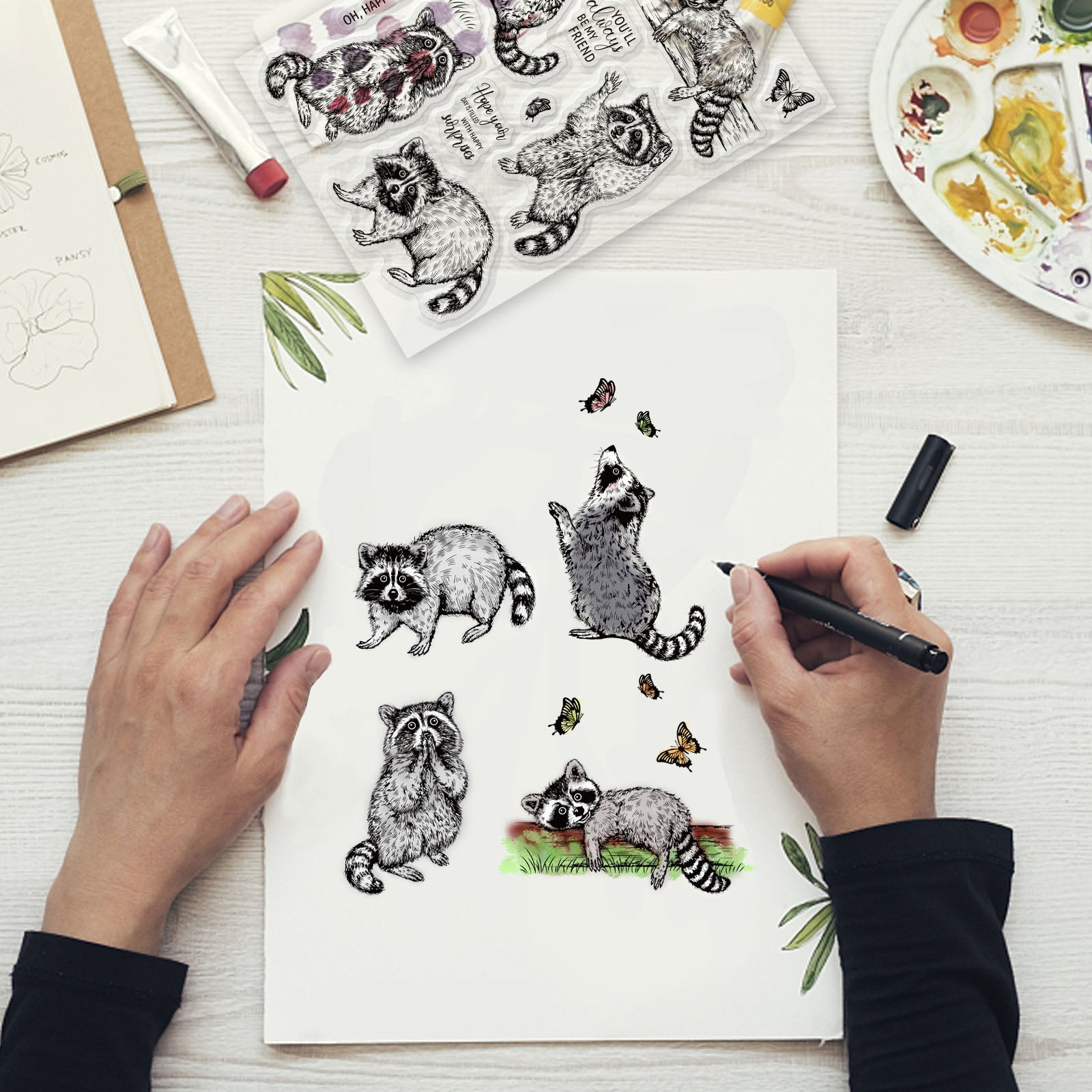 Craspire Raccoon Clear Stamps Silicone Stamp Seal for Card Making Decoration and DIY Scrapbooking