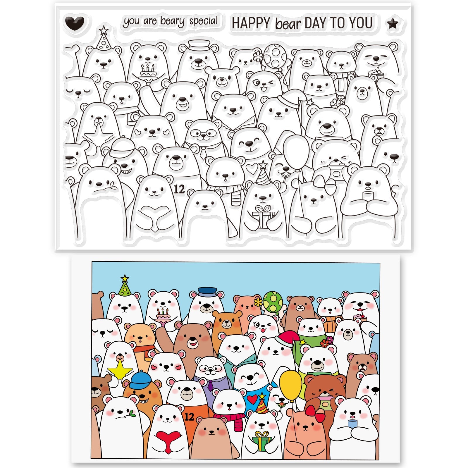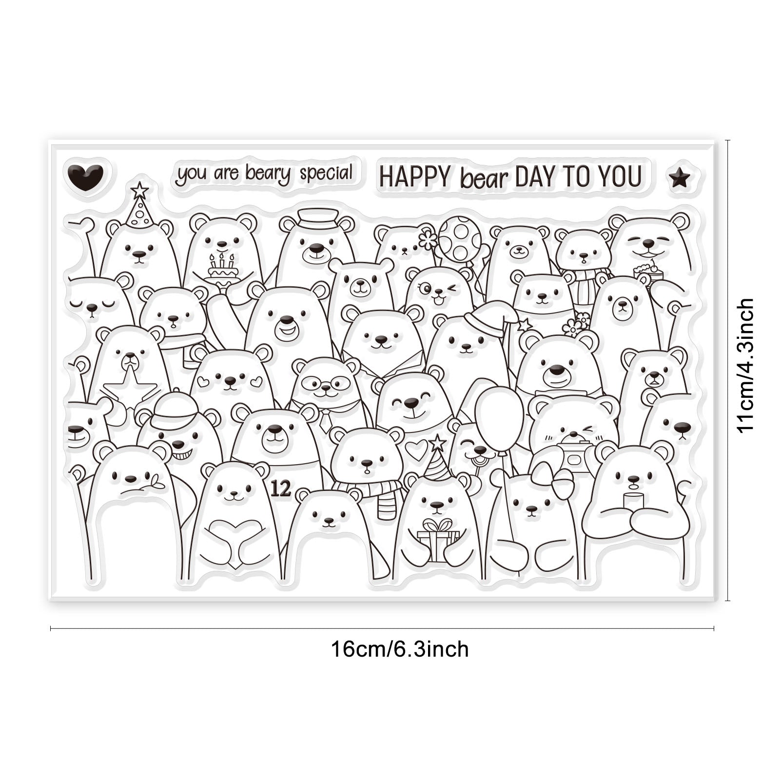 Craspire PVC Plastic Stamps, for DIY Scrapbooking, Photo Album Decorative, Cards Making, Stamp Sheets, Bear Pattern, 16x11x0.3cm