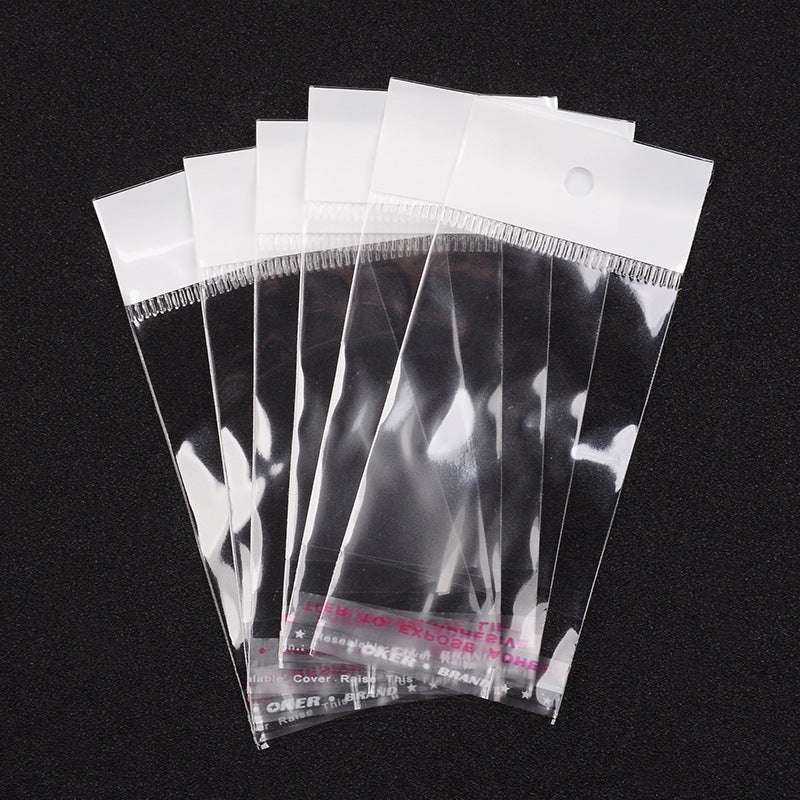 200 pc Cellophane Bags, 11.5x5cm, Unilateral Thickness: 0.035mm, Inner Measure: 6.5x5cm, Hole: 6mm