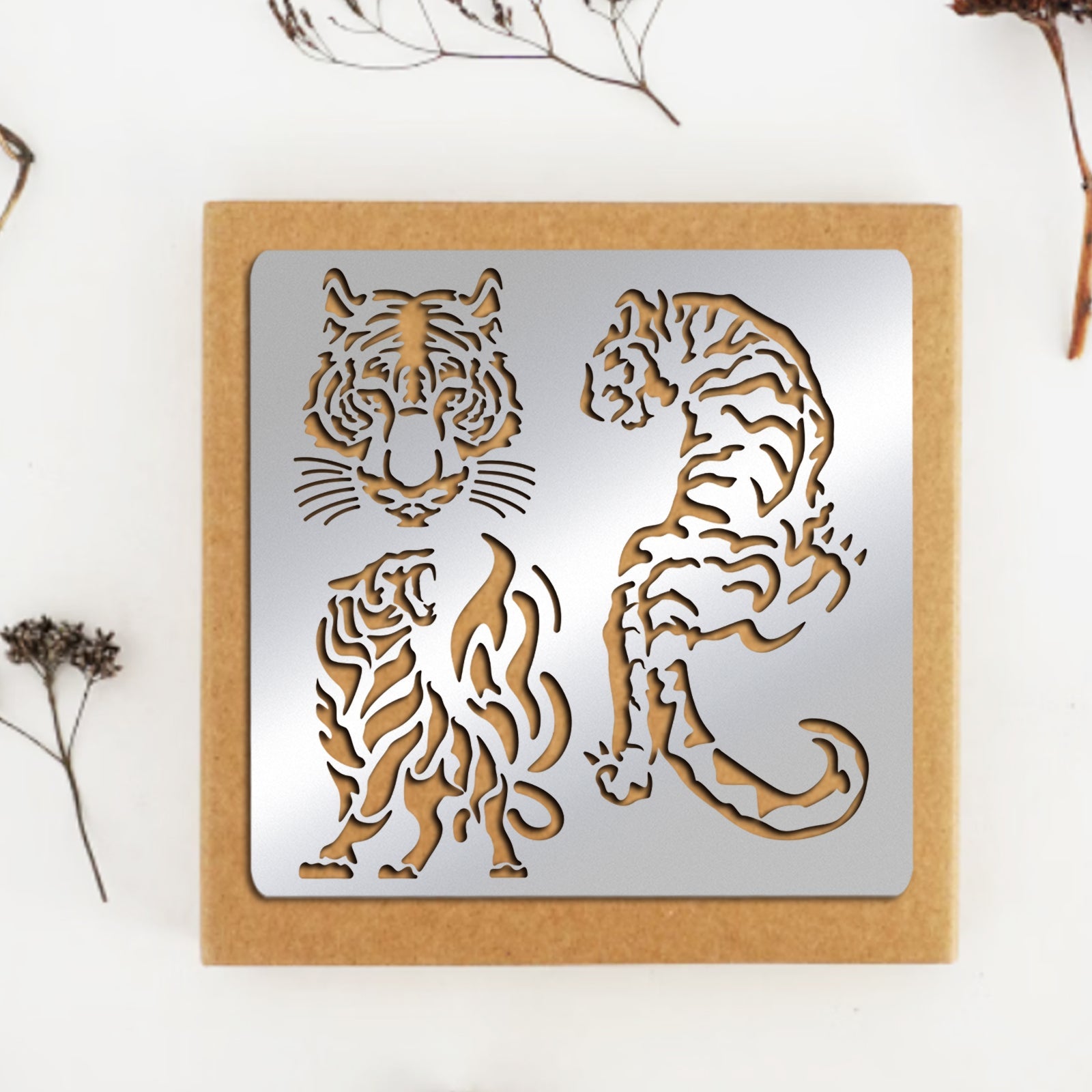 CRASPIRE Stainless Steel Cutting Dies Stencils, for DIY Scrapbooking/Photo Album, Decorative Embossing DIY Paper Card, Stainless Steel Color, Tiger Pattern, 156x156mm