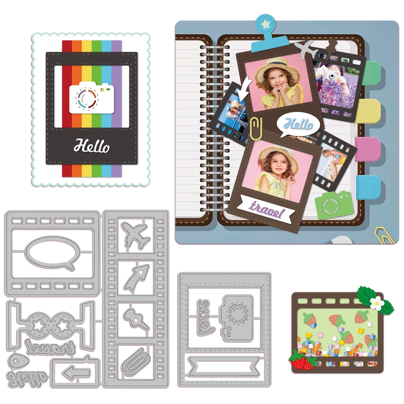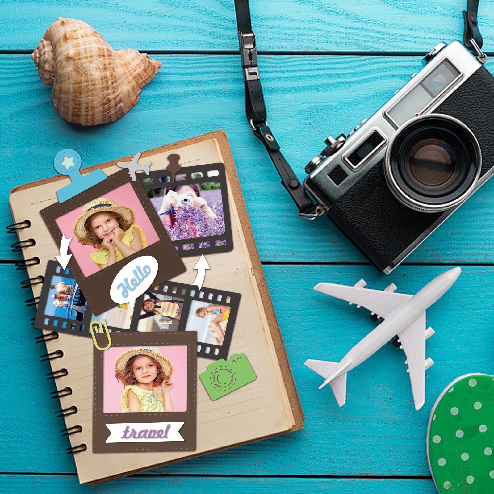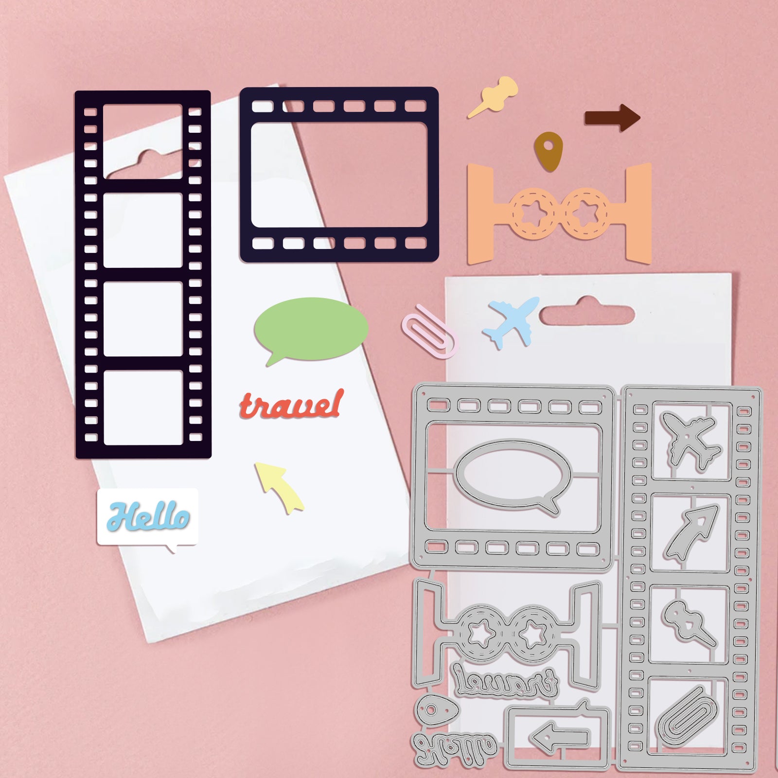 CRASPIRE Easy Film Background, Travel, Camera Carbon Steel Cutting Dies Stencils, for DIY Scrapbooking/Photo Album, Decorative Embossing DIY Paper Card