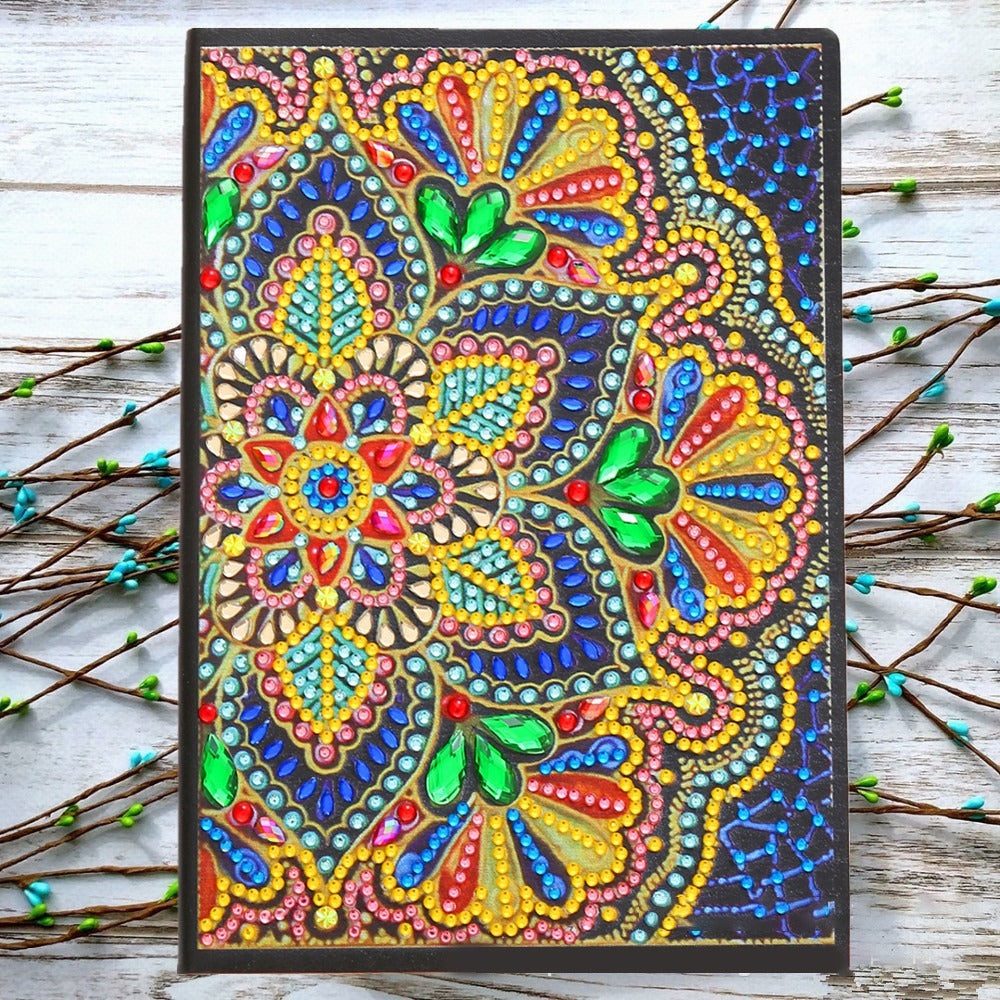 DIY Diamond Painting Notebook Kits, including PU Leather Book, Resin Rhinestones, Diamond Sticky Pen, Tray Plate and Glue Clay, Flower Pattern