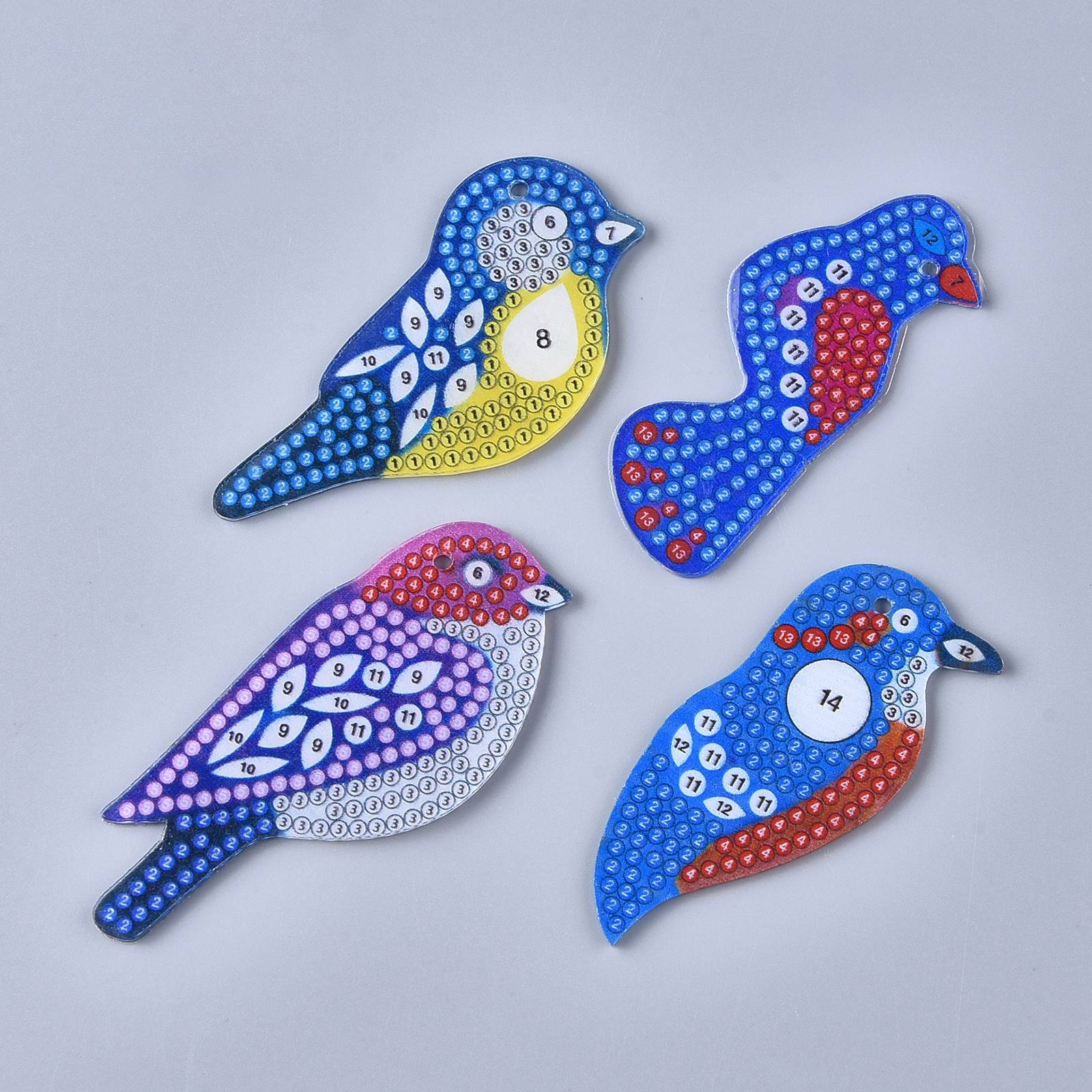Craspire DIY Diamond Painting Keychain Kits, with Bird Shape Diamond Painting Mold, Rhinestone, Diamond Sticky Pen, Tray Plate and Glue Clay, Ball Chain Keychain and Swivel Clasp, Mixed Color, 86.5x39x2mm, Hole: 2.8mm, 2Set/Pack