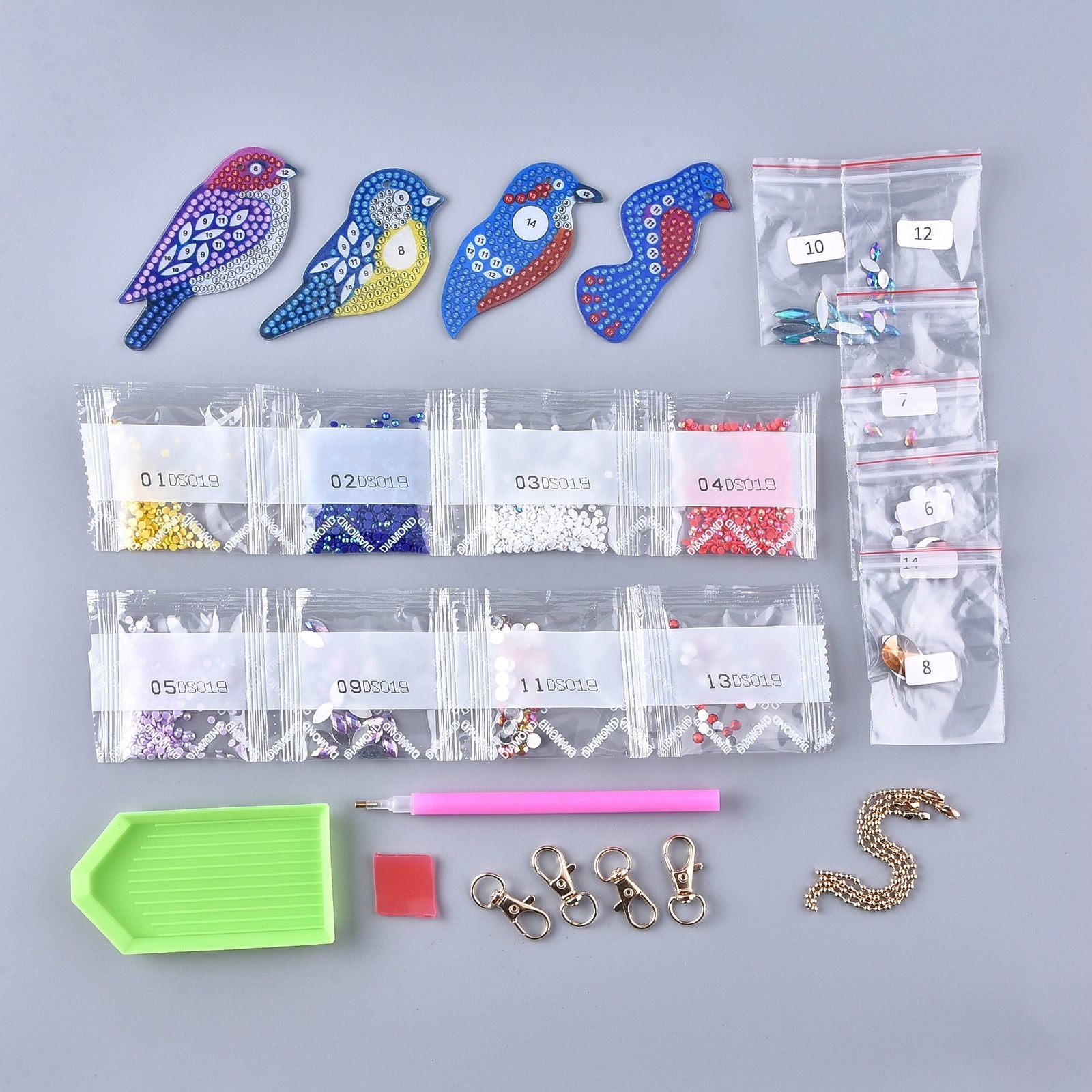 DIY Diamond Painting Keychain Kits, with Bird Shape Diamond Painting Mold, Rhinestone, Diamond Sticky Pen, Tray Plate and Glue Clay, Ball Chain Keychain and Swivel Clasp, Mixed Color