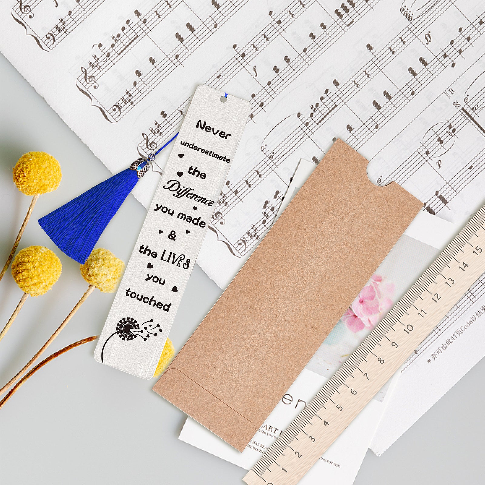 - >Size: Rectangle with Word DIY Stainless Steel Bookmarks: 125x26mm, 2pcs;Polyester Tassel Big Pendants Decorations: 160x12mm, 2pcs; Rectangle Paper Bags: 15x5.5x0.06cm, 1pc.