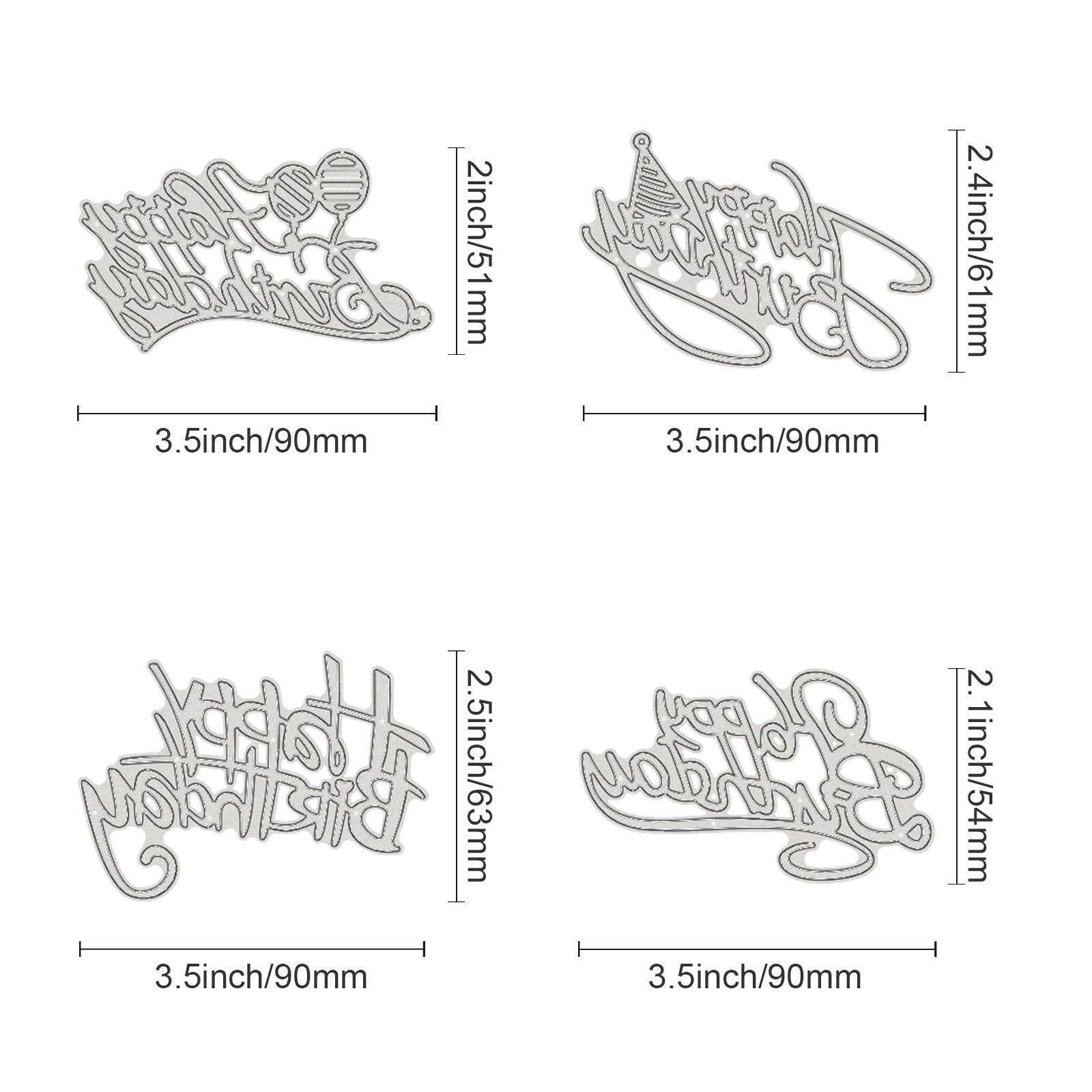 CRASPIRE 4 Pieces Happy Birthday Words Cutting Dies Metal Die Embossing Stencils for DIY Card Scrapbooking Craft Album Paper Decor