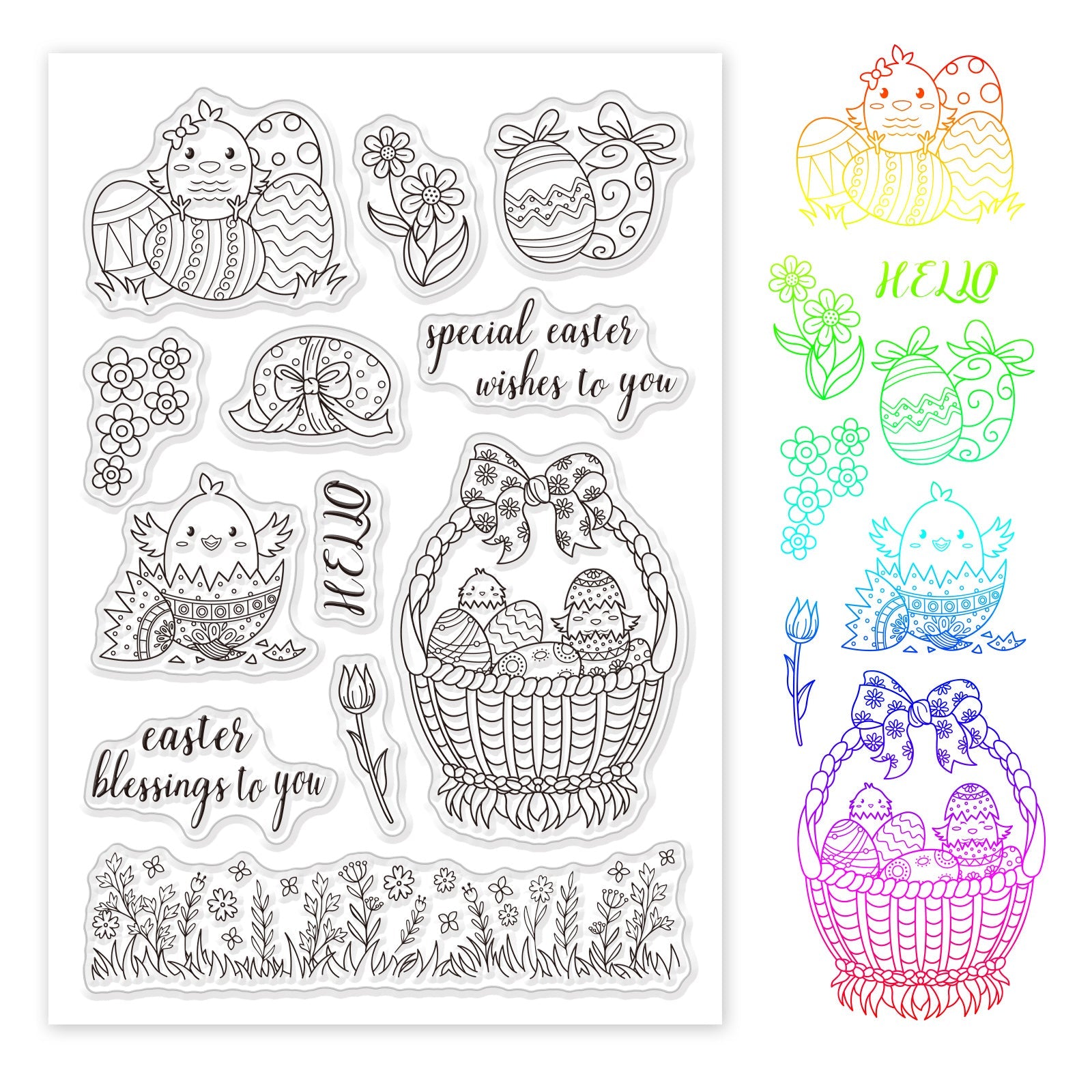 Craspire Chicken with Easter Basket Clear Stamps Silicone Stamp Seal for Card Making Decoration and DIY Scrapbooking