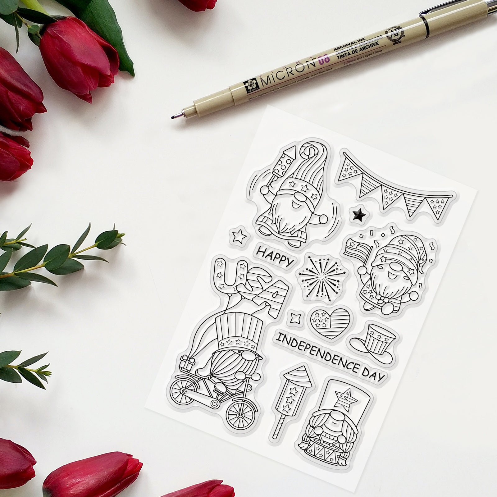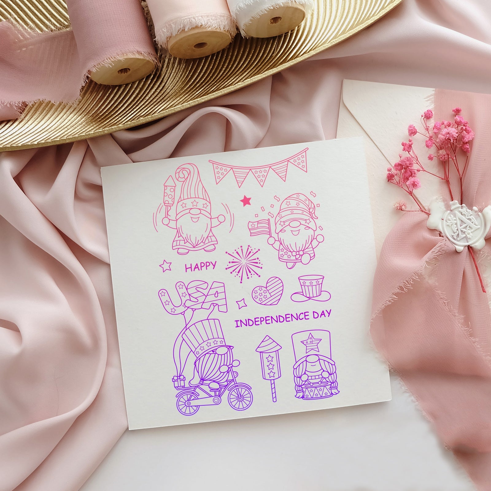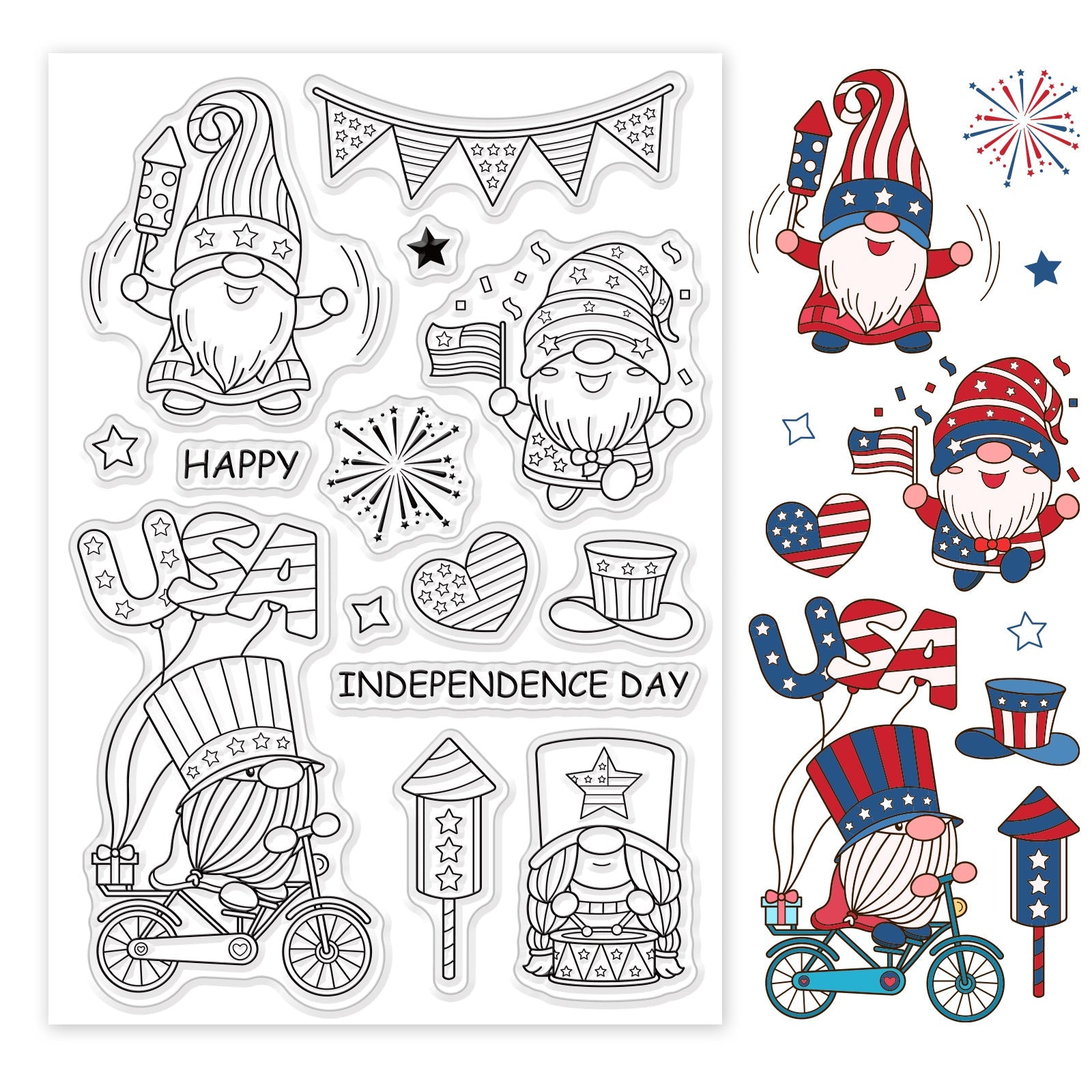 Craspire Gnome Independence Day Clear Silicone Stamp Seal for Card Making Decoration and DIY Scrapbooking