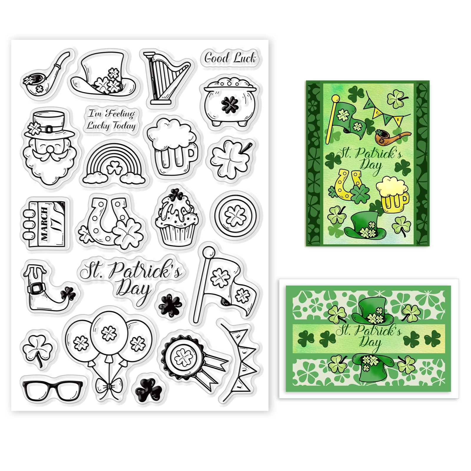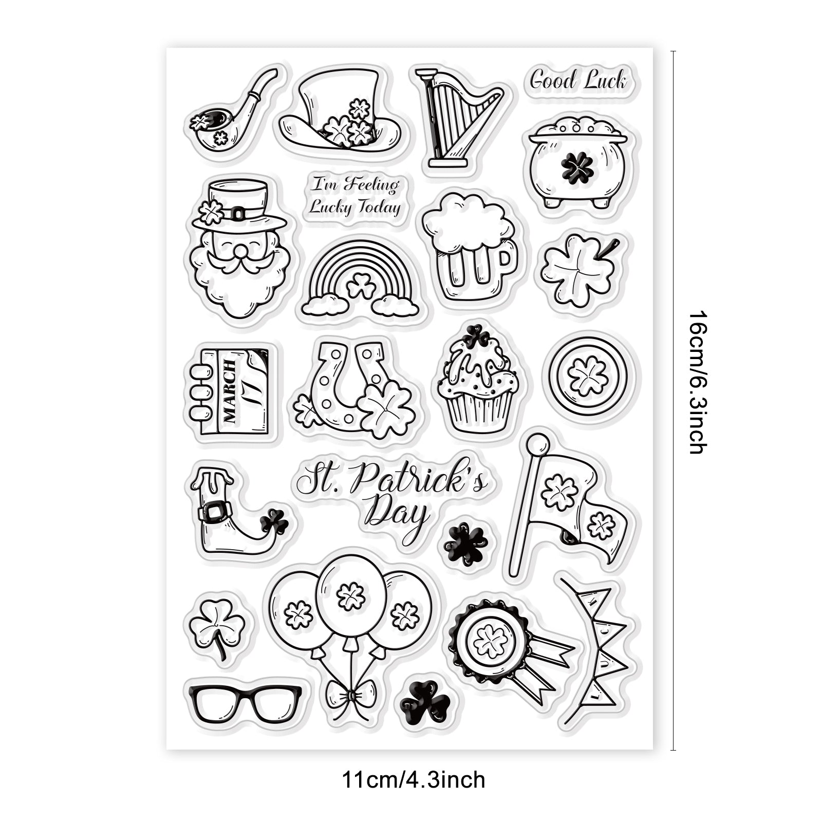 Craspire St. Patrick's Day, Four Leaf Clover Clear Stamps Silicone Stamp Seal for Card Making Decoration and DIY Scrapbooking