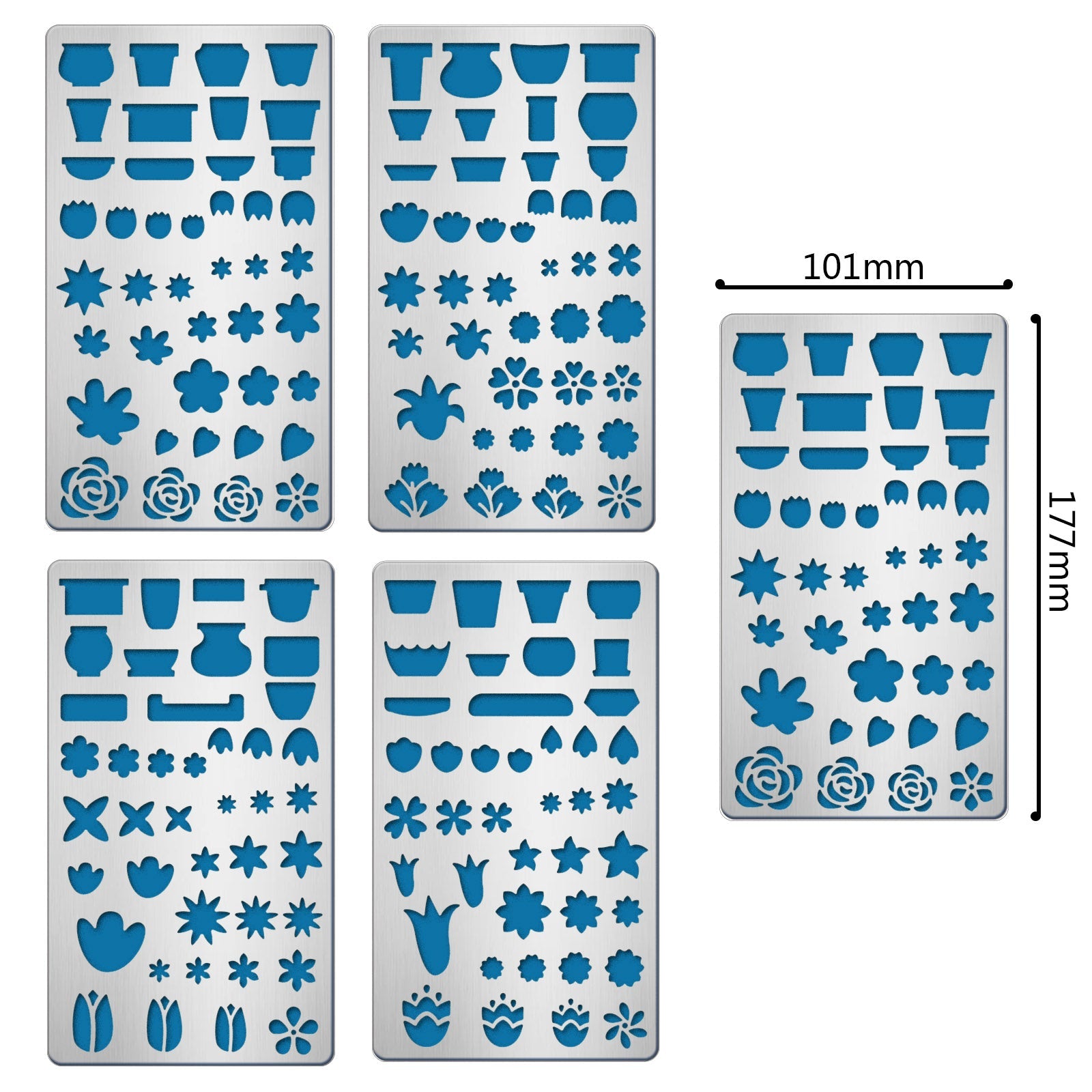 Flower Pattern Cutting Dies Stencils: about 101mm wide, 177mm long, 4style, 1pc/style, 4pcs.
