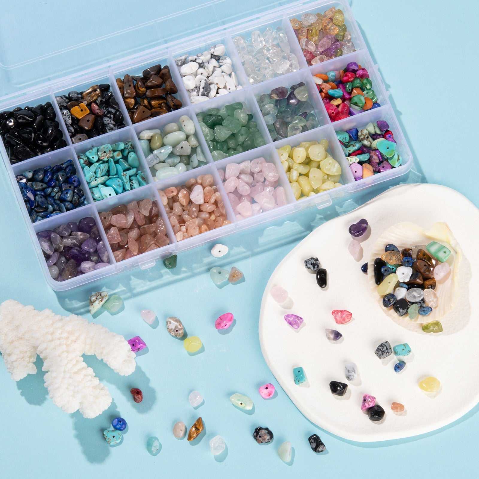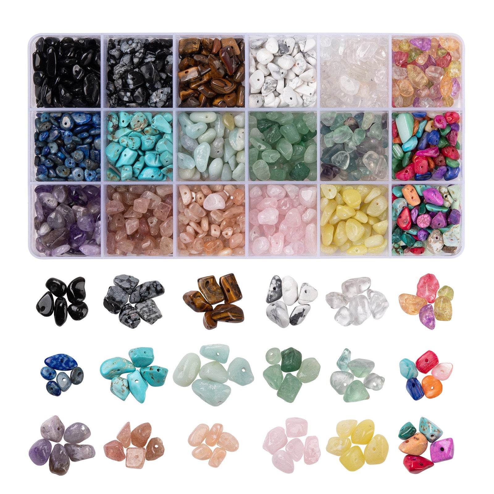 CRASPIRE 270G 18 Style Natural & Synthetic Gemstone and Shell Chip Beads, for Jewellery Making, 15g/style