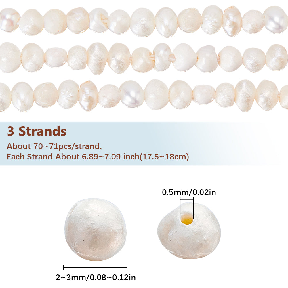 3 Strands Natural Cultured Freshwater Pearl Beads Strands, Potato, PapayaWhip
