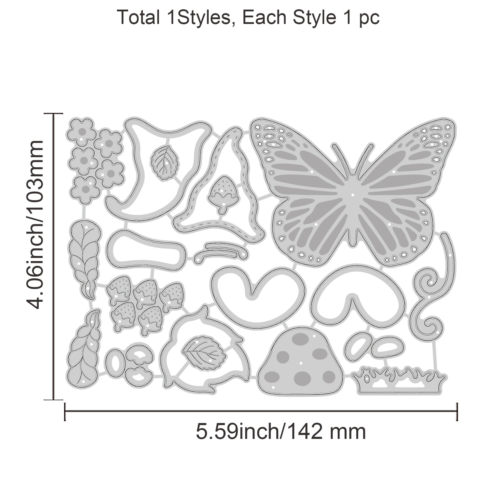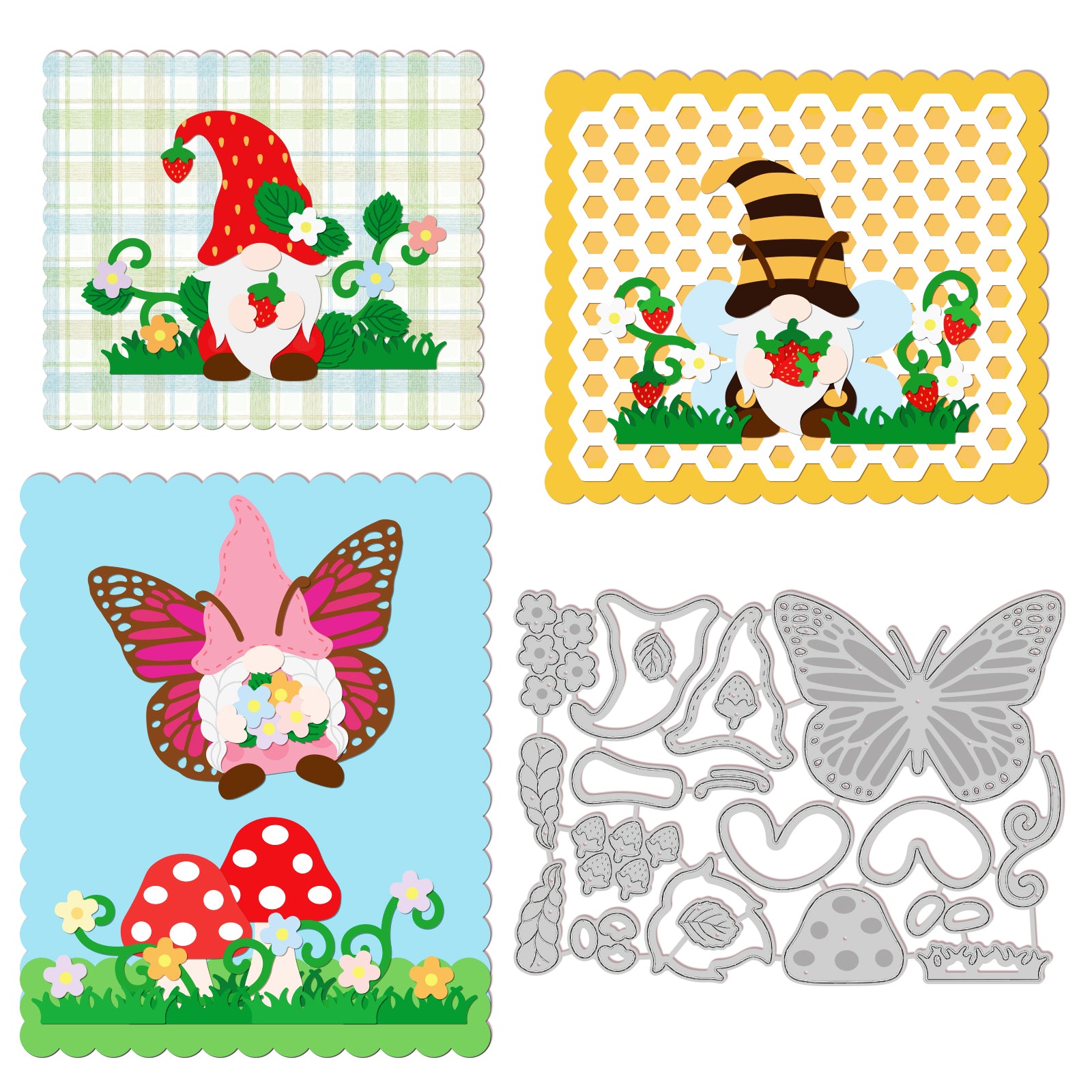 - Gnome Theme: Elements of the cut die include gnomes, butterflies, strawberries, lawns, mushrooms, flowers and more. The design of this combination of gnome and natural plants is very novel and interesting. It's great to stick them on scrapbooks for added fun.