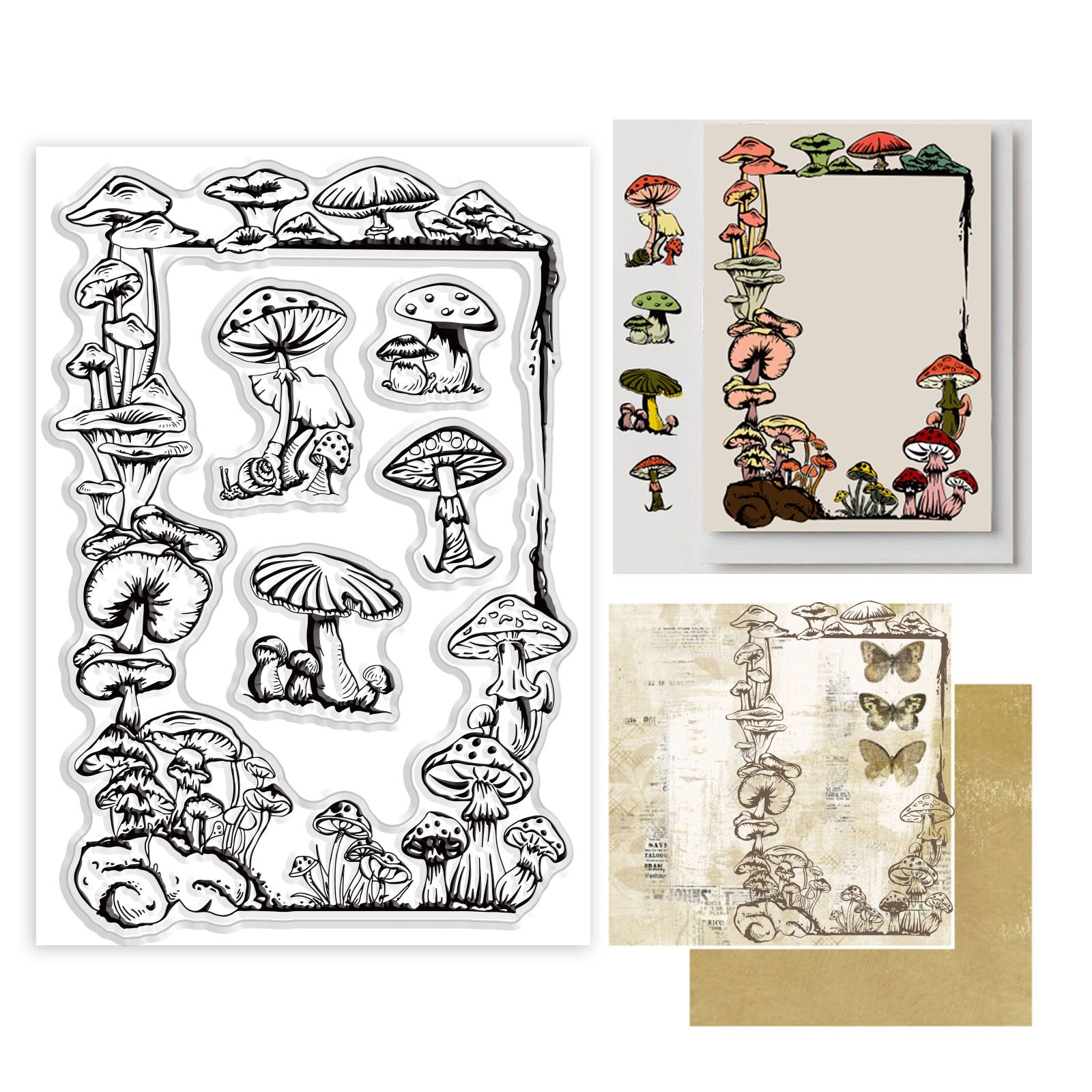 Craspire Vintage Mushroom Frame Clear Silicone Stamp Seal for Card Making Decoration and DIY Scrapbooking