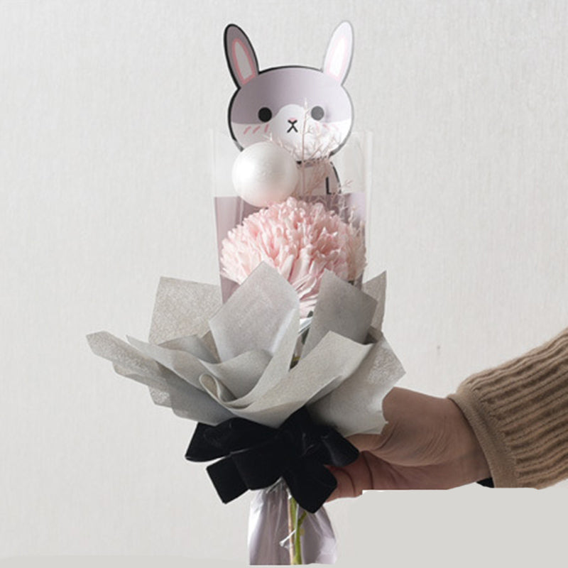 Plastic Gift Bags, Single Flower Packaging Bags, Flower Bouquet Bag, with Paper Cards & Cattoon Pattern, for Children's Day, Rabbit Pattern