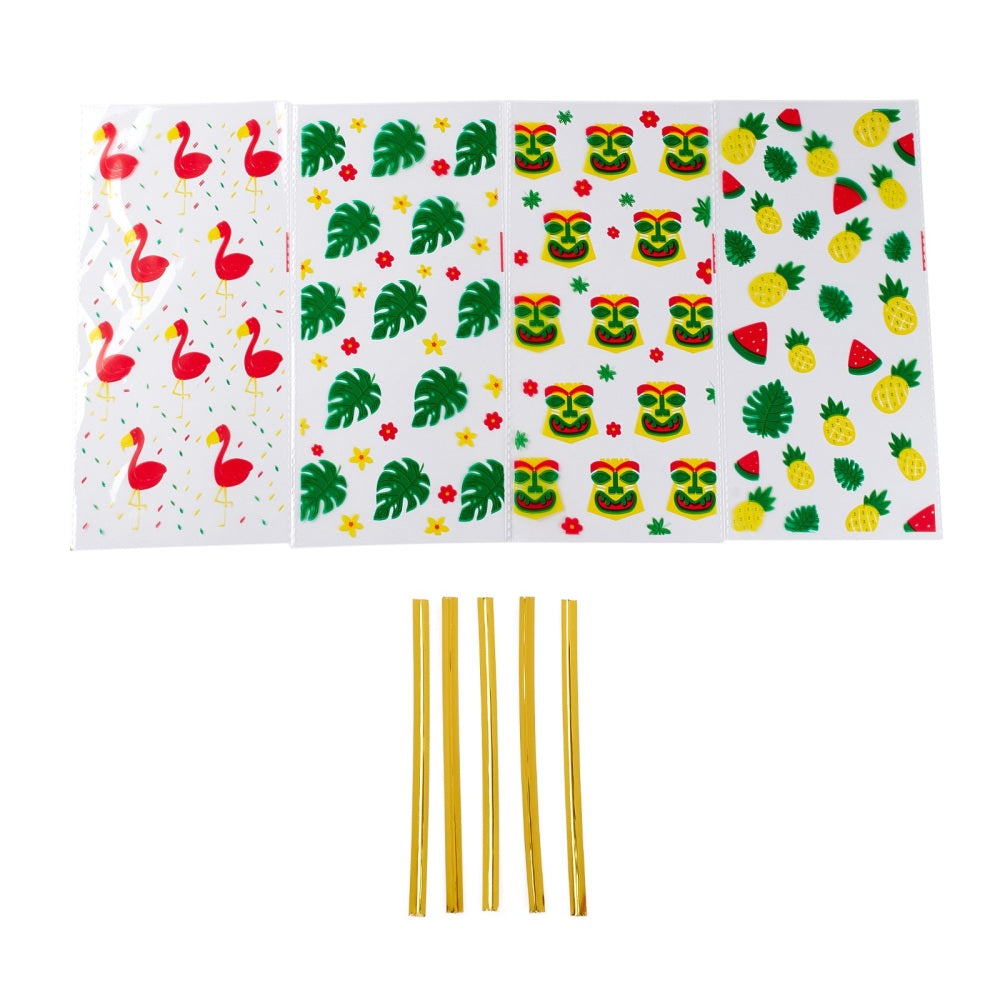 2 Bag OPP Plastic Storage Bags, Hawaii Theme, for Party Candy, Cookies, Gift Packaging, Rectangle, Mixed Patterns, 27x13x0.01cm, Binding Wire: 8x0.4x0.04cm, 100pc/bag