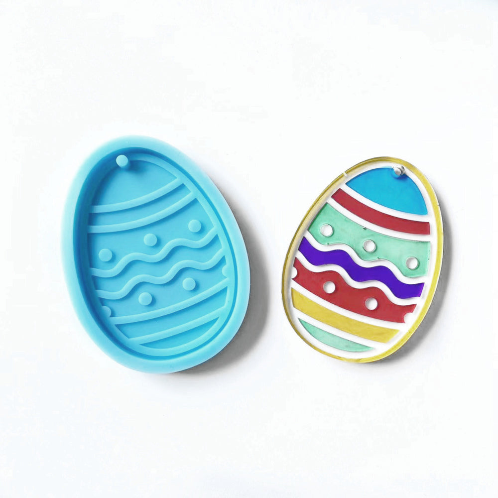 Food Grade Pendant Silicone Molds, Bakeware Tools, For DIY Cake Decoration, Chocolate, Candy Mold, Easter Theme, Egg, Light Sky Blue, 72x53x7mm, Hole: 3.4mm, Inner Diameter: 65x46mm