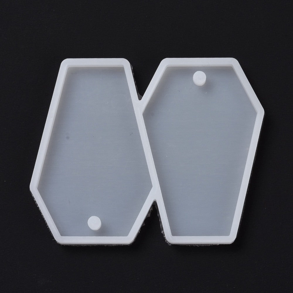 DIY Coffin Pendants Silicone Molds, Resin Casting Molds, For UV Resin, Epoxy Resin Jewelry Making, Halloween Theme, White, 58x49x4mm, Hole: 3mm, Inner Diameter: 46x30mm