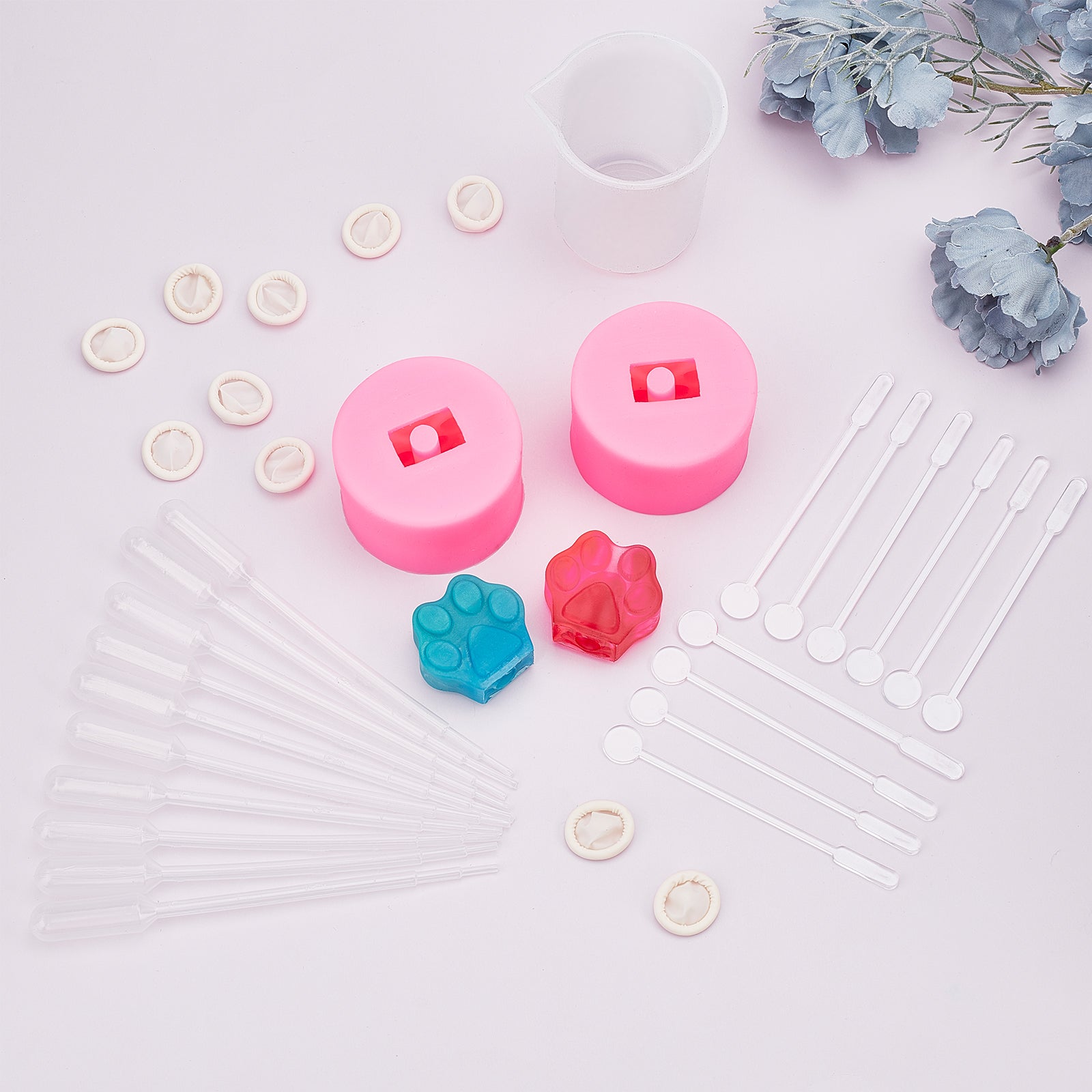 - Footprint DIY Straw Topper Silicone Molds Decoration Kit, with Plastic Transfer Pipettes & Stirring Rod, Silicone Measuring Cup, Latex Finger Cots, Hot Pink.