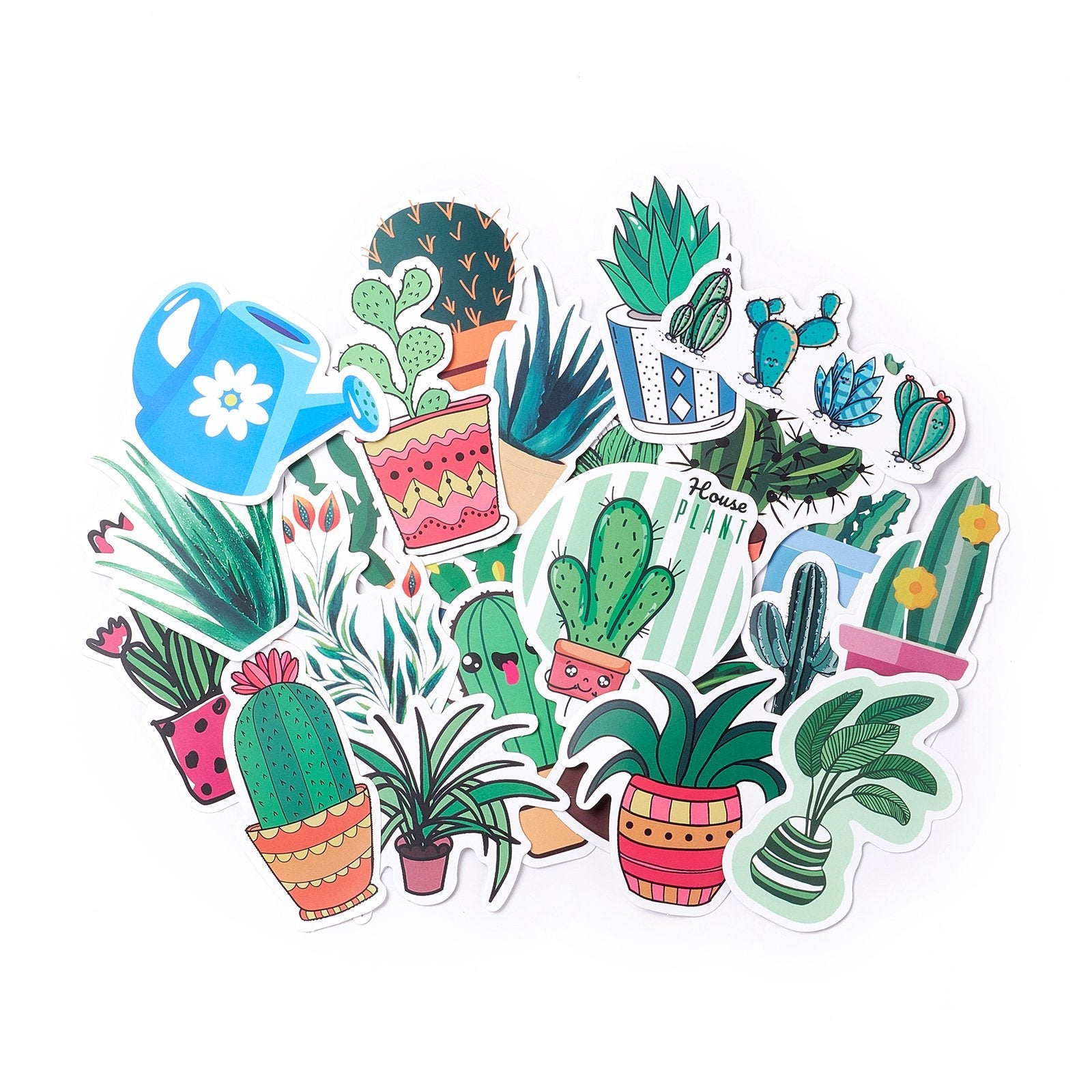 Craspire Coloful Cartoon Stickers, Vinyl Waterproof Decals, for Water Bottles Laptop Phone Skateboard Decoration, Cactus Pattern, 5.1x2.8x0.02cm, 45pcs/bag