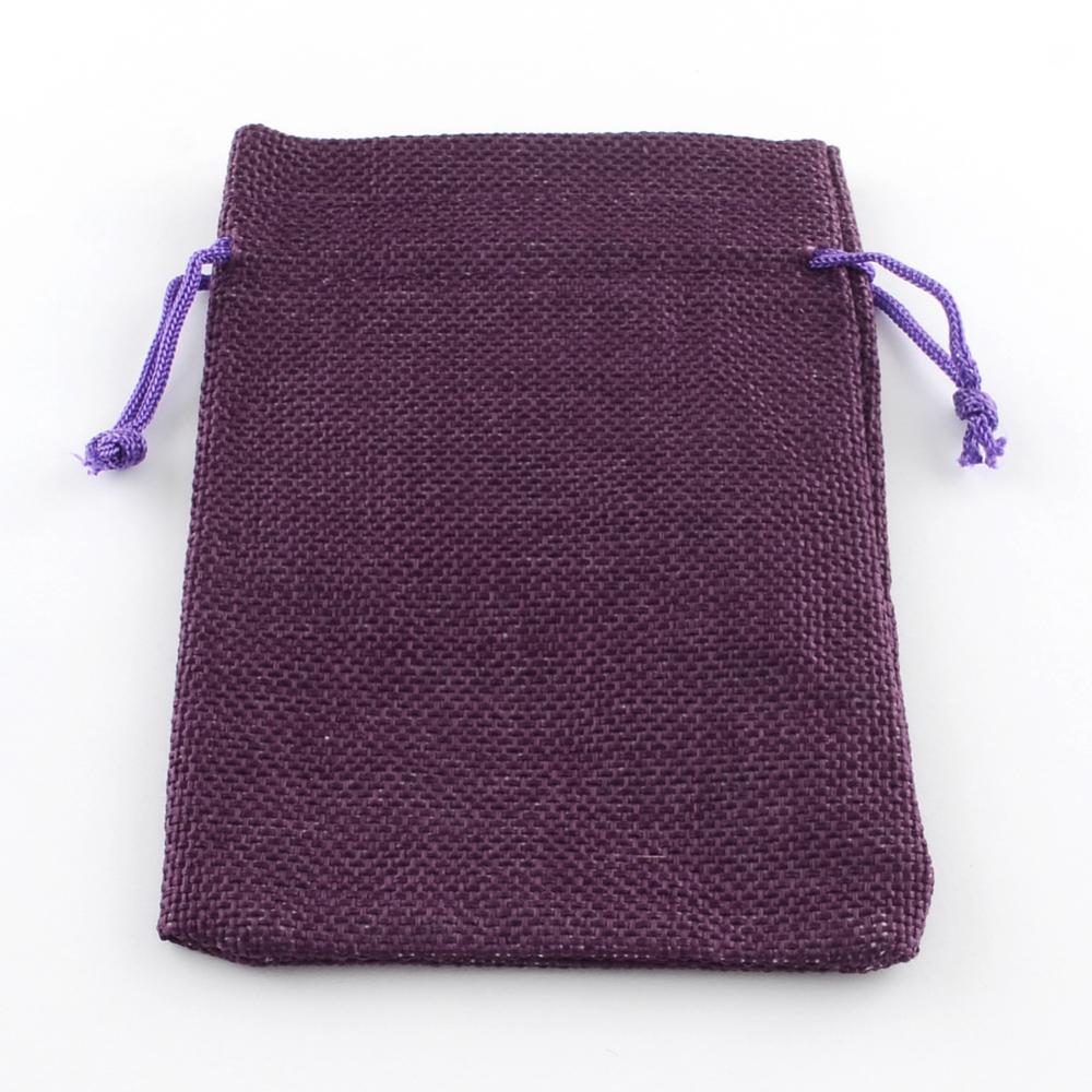Polyester Imitation Burlap Packing Pouches Drawstring Bags, for Christmas, Wedding Party and DIY Craft Packing, Purple
