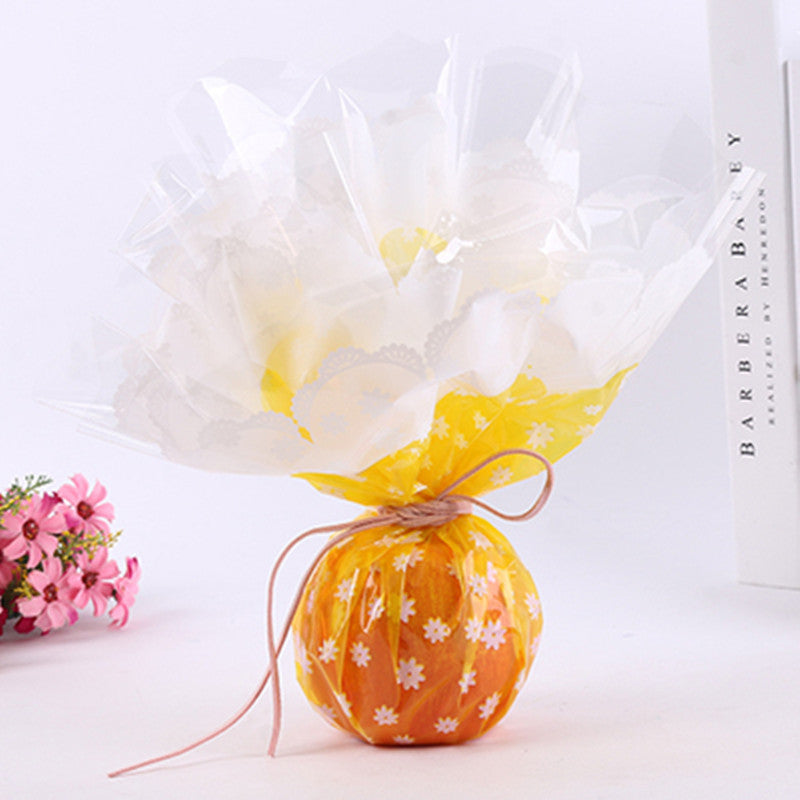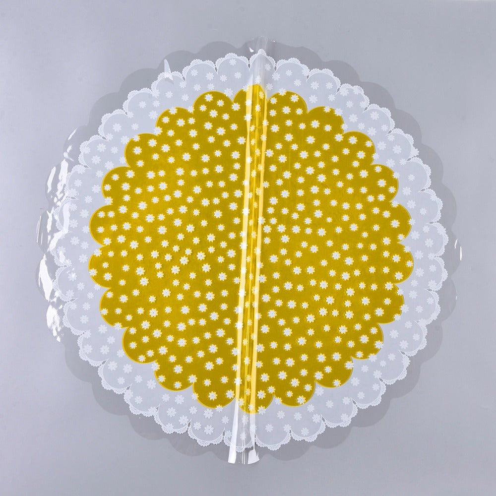 5 Bag Oriented Polypropylene(OPP) Plastic Gift Wrapping Paper, Christmas Theme, for Apple, Candy, Flat Round with Flower Pattern, Gold, 58.5x0.003cm, 20pcs/bag