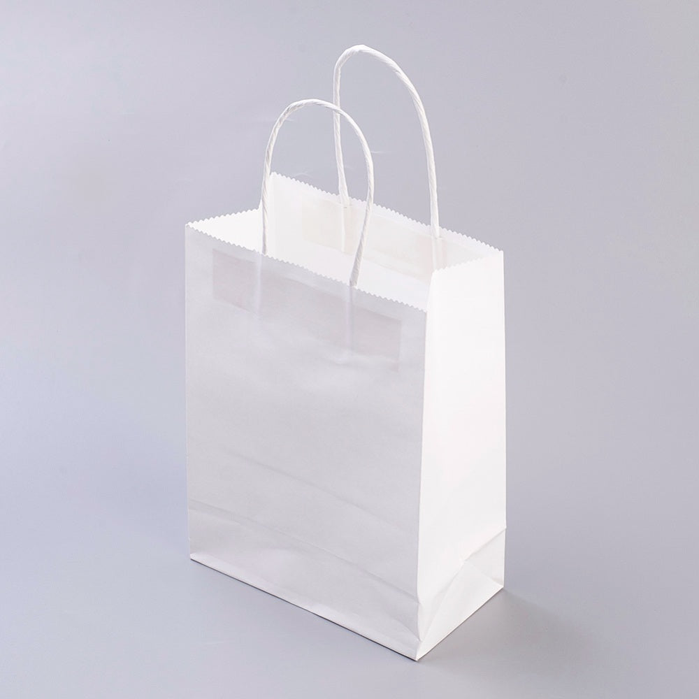 10 pc Pure Color Kraft Paper Bags, Gift Bags, Shopping Bags, with Paper Twine Handles, Rectangle, White, 21x15x8cm