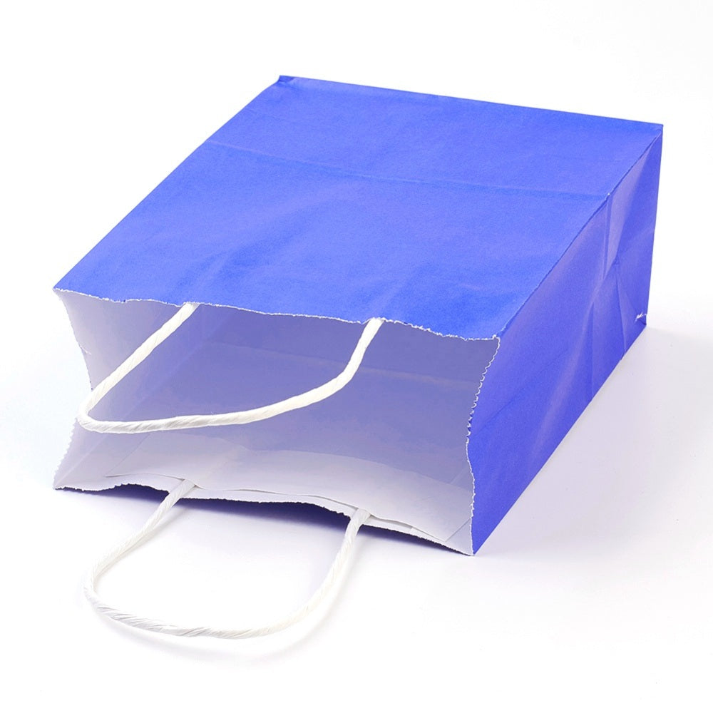 Pure Color Kraft Paper Bags, Gift Bags, Shopping Bags, with Paper Twine Handles, Rectangle, Blue