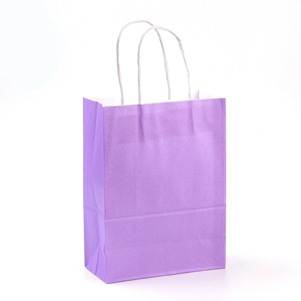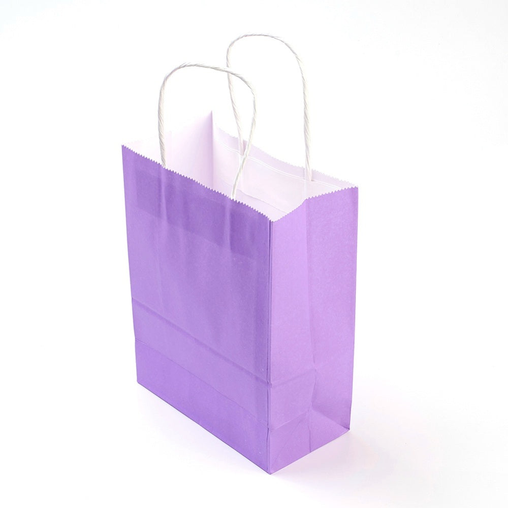 12 pc Pure Color Kraft Paper Bags, Gift Bags, Shopping Bags, with Paper Twine Handles, Rectangle, Medium Purple, 33x26x12cm