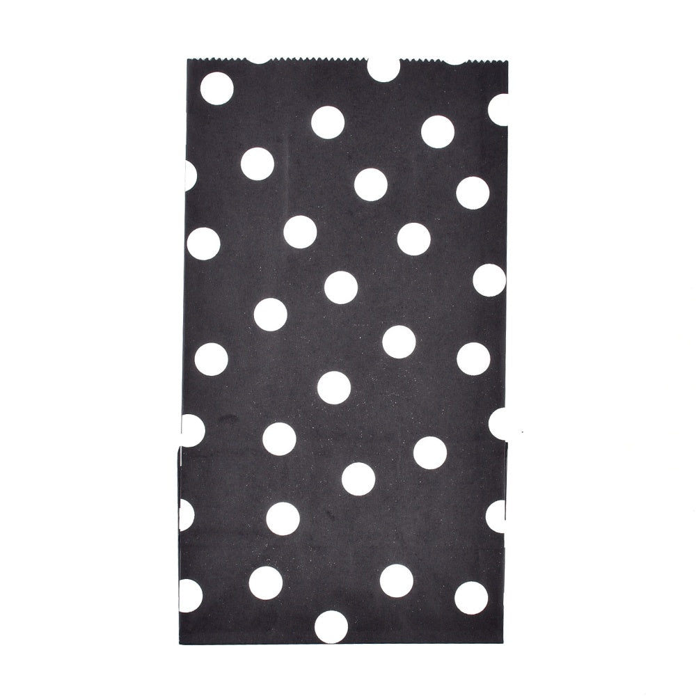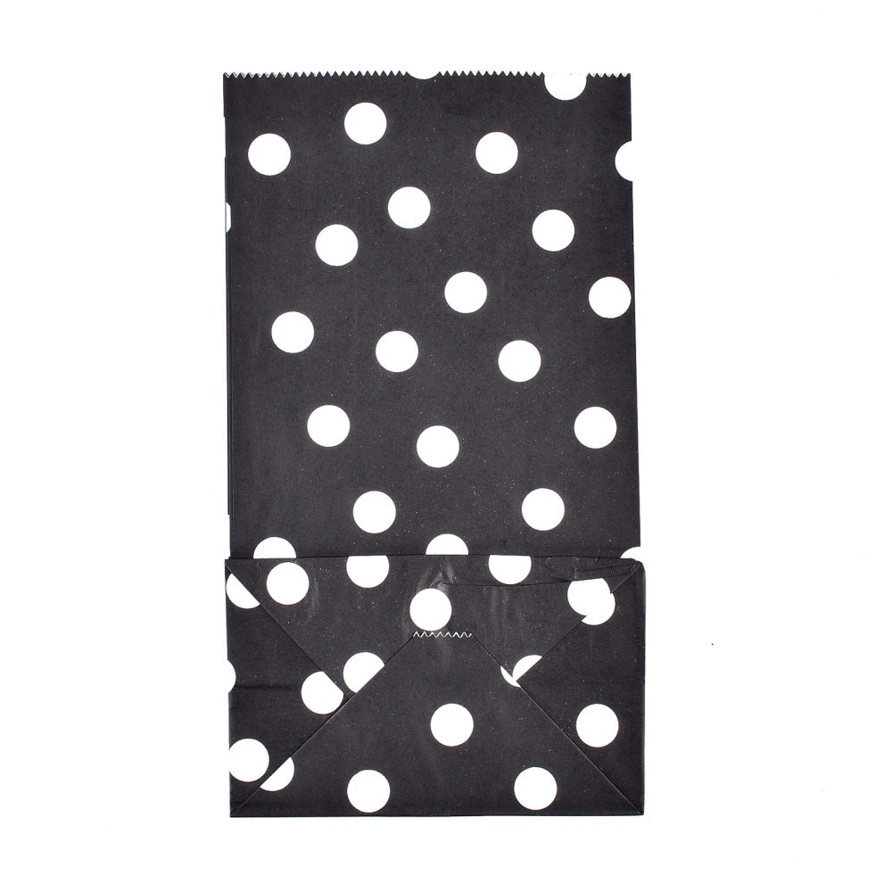 100 pc Polka Dot Pattern Eco-Friendly Kraft Paper Bags, Gift Bags, Shopping Bags, Rectangle, Black, 24x13x8cm