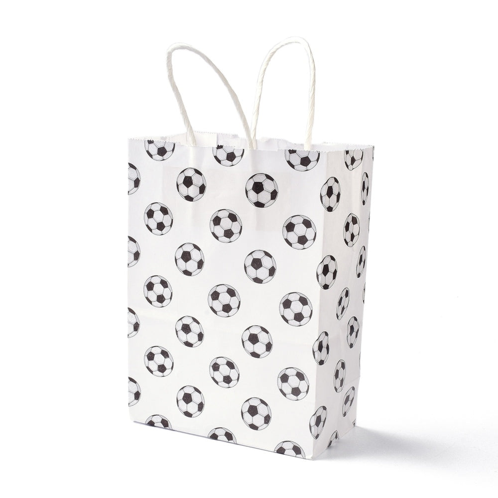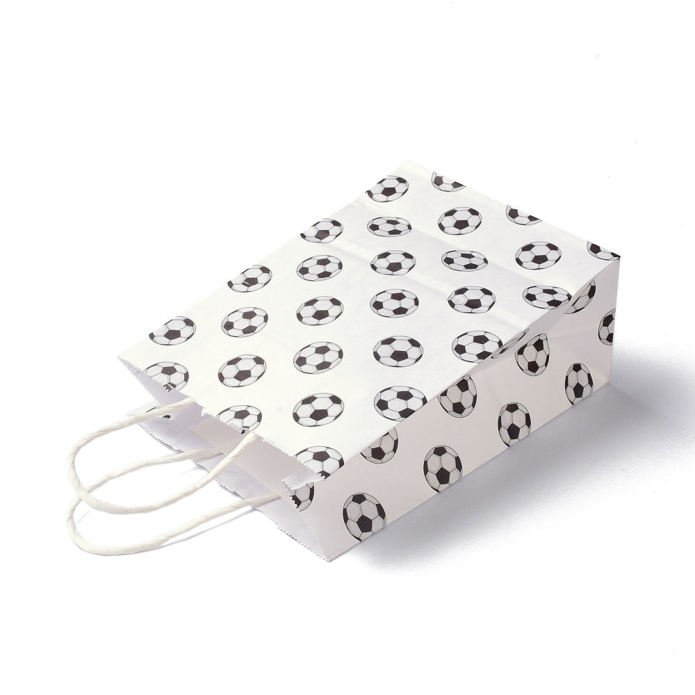 12 pc Rectangle Paper Bags, with Handle, for Gift Bags and Shopping Bags, Sports Theme, Football Pattern, White, 14.9x8.1x21cm