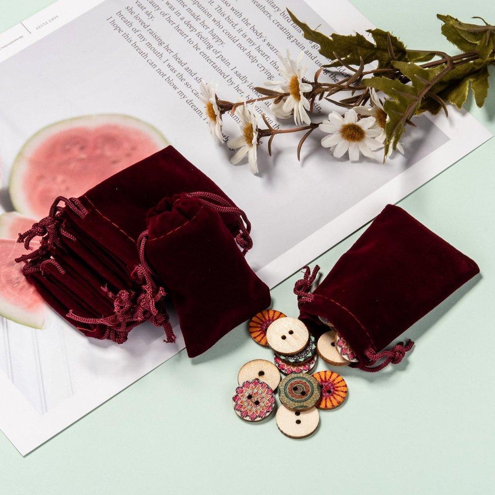Rectangle Velvet Pouches, Gift Bags, Dark Red