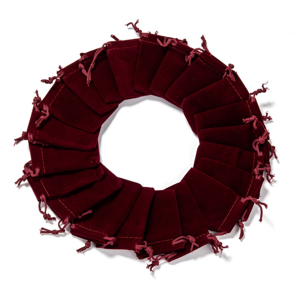 50 pc Rectangle Velvet Pouches, Gift Bags, Dark Red, 7x5cm