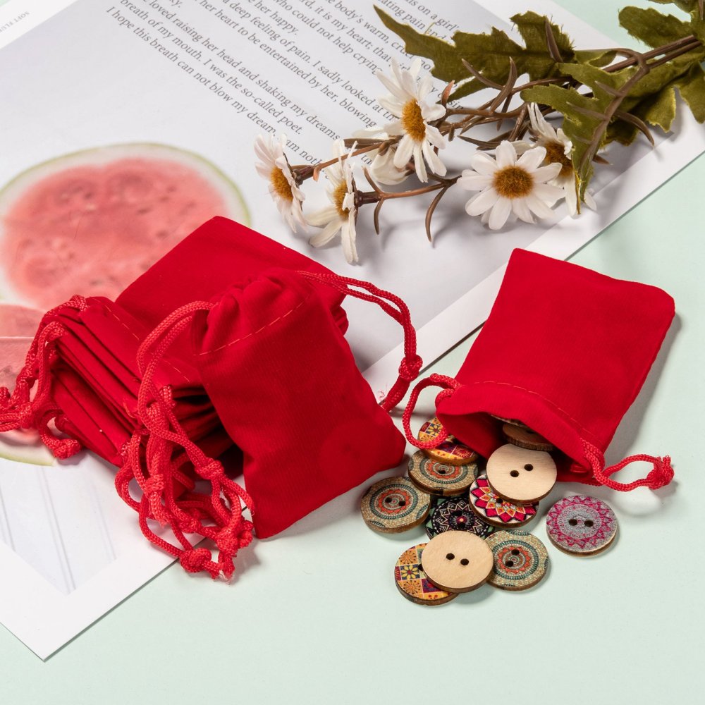 50 pc Rectangle Velvet Pouches, Gift Bags, Red, 7x5cm