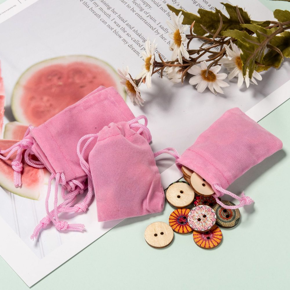 Rectangle Velvet Pouches, Gift Bags, Pink