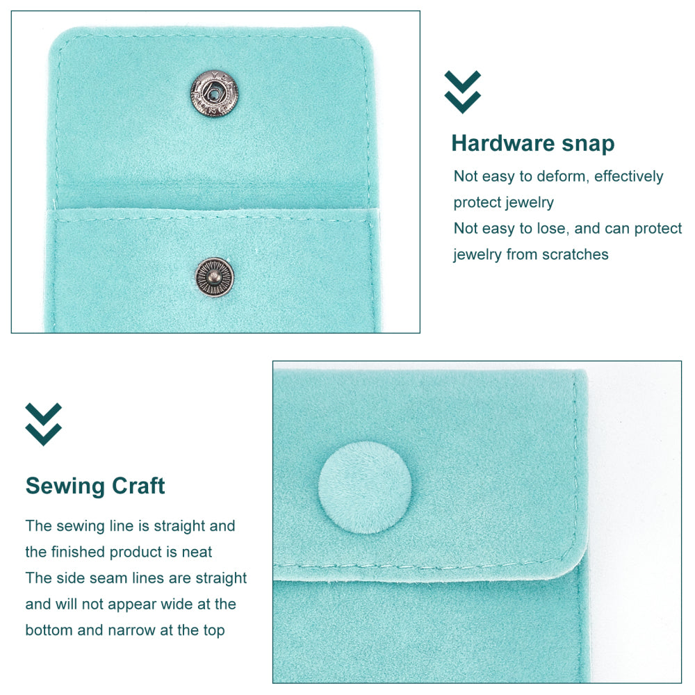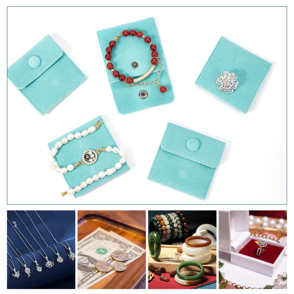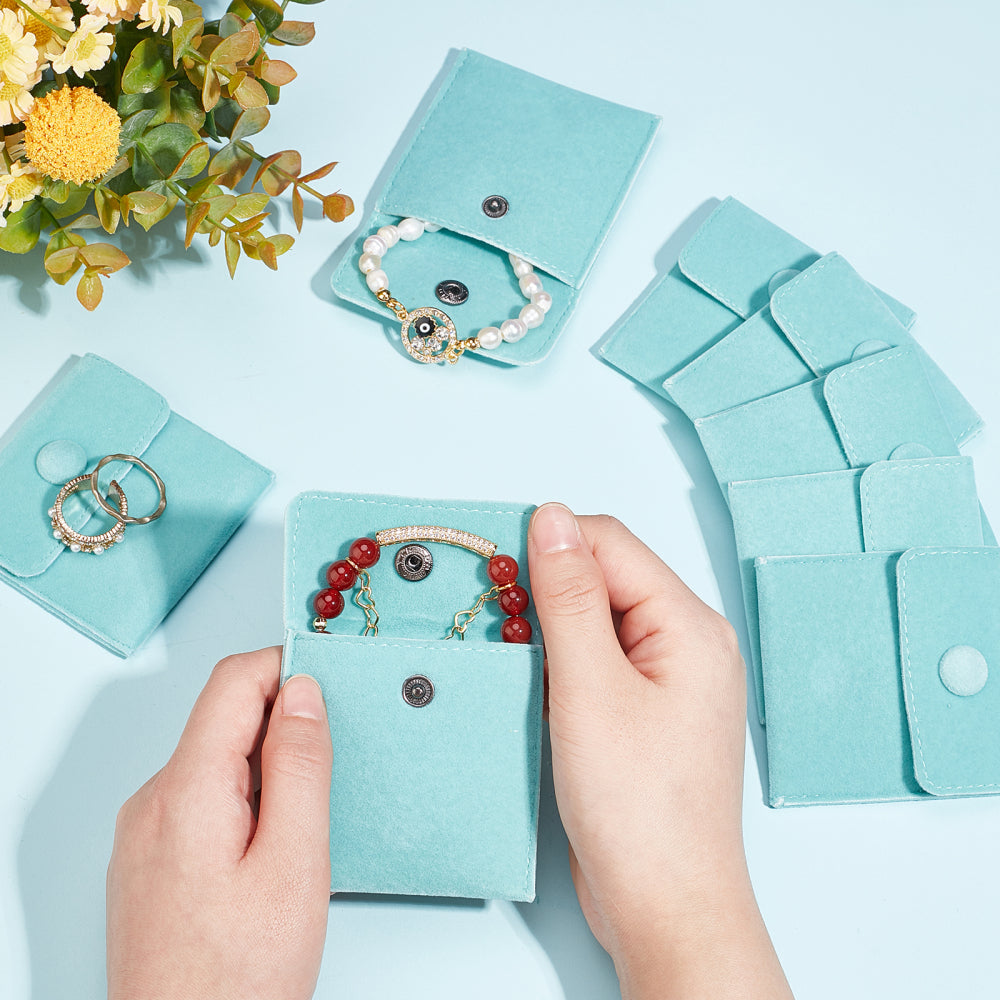 Square Velvet Jewelry Bags, with Snap Fastener, Turquoise