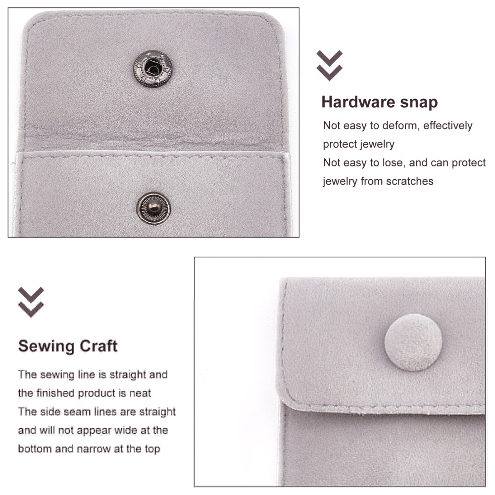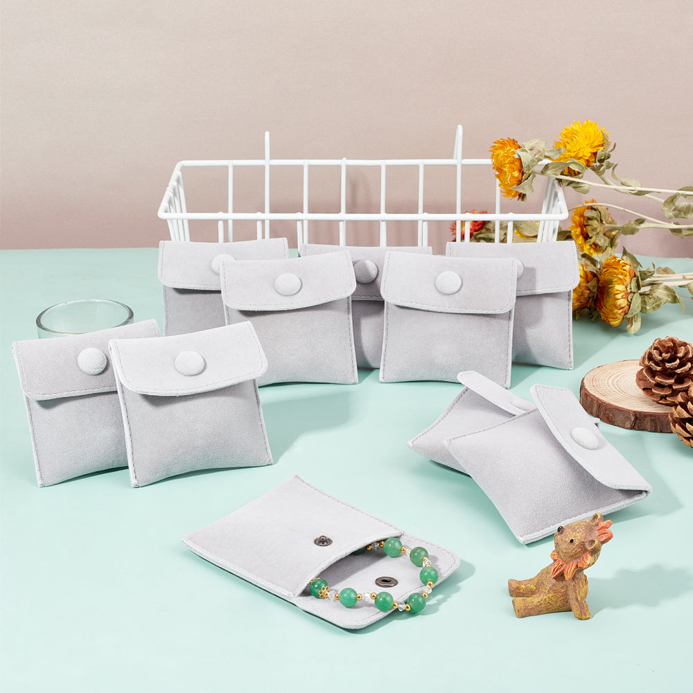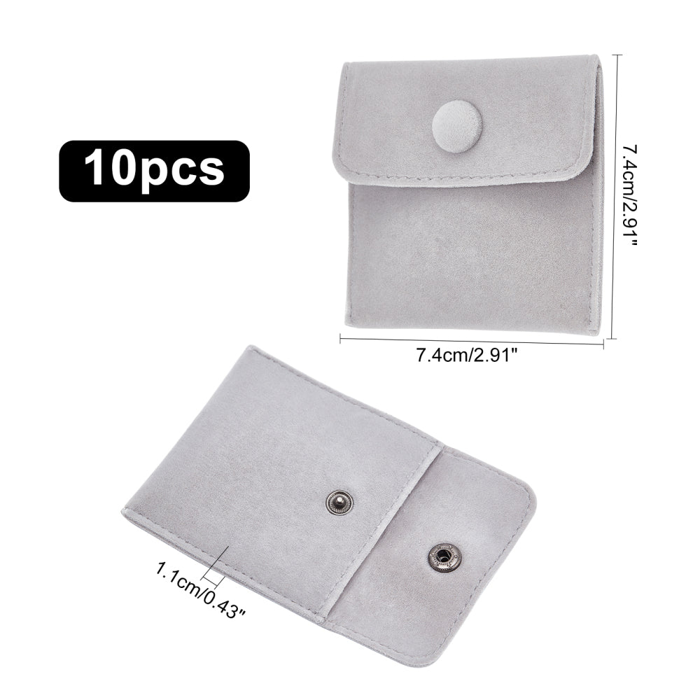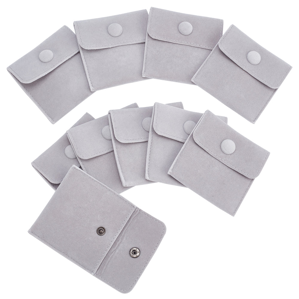 10 pc 10 Pcs Velvet Jewelry Pouches with Snap Button, Light Grey Velvet Jewelry Storage Bags Luxury Gift Bag for Candy Gift and Jewelry Necklace Bracelet Packing, 7.4x7.4cm