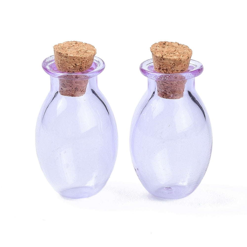 10 pcs Oval Glass Cork Bottles Ornament, Glass Empty Wishing Bottles, DIY Vials for Pendant Decorations, Lilac, 15.5x26~30mm
