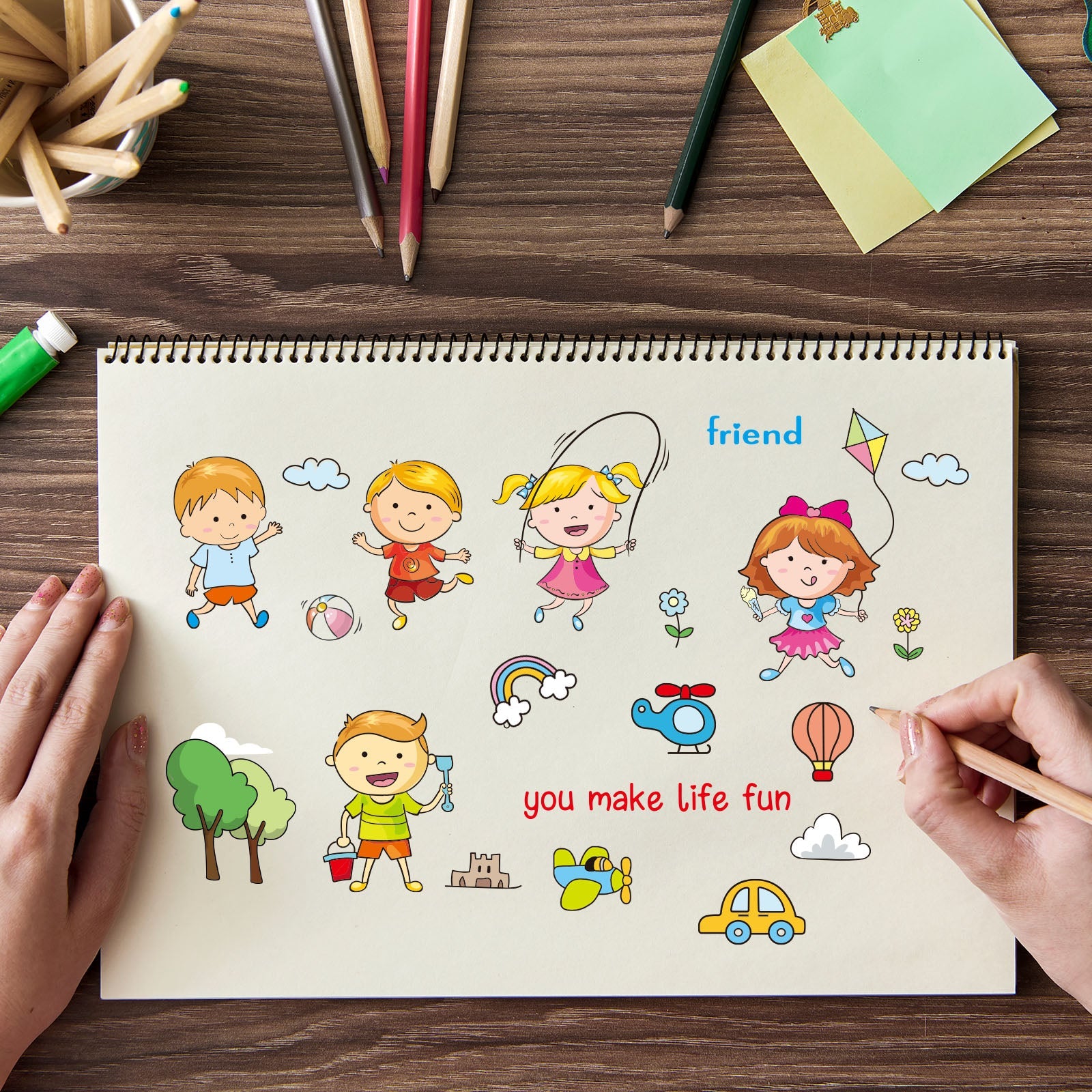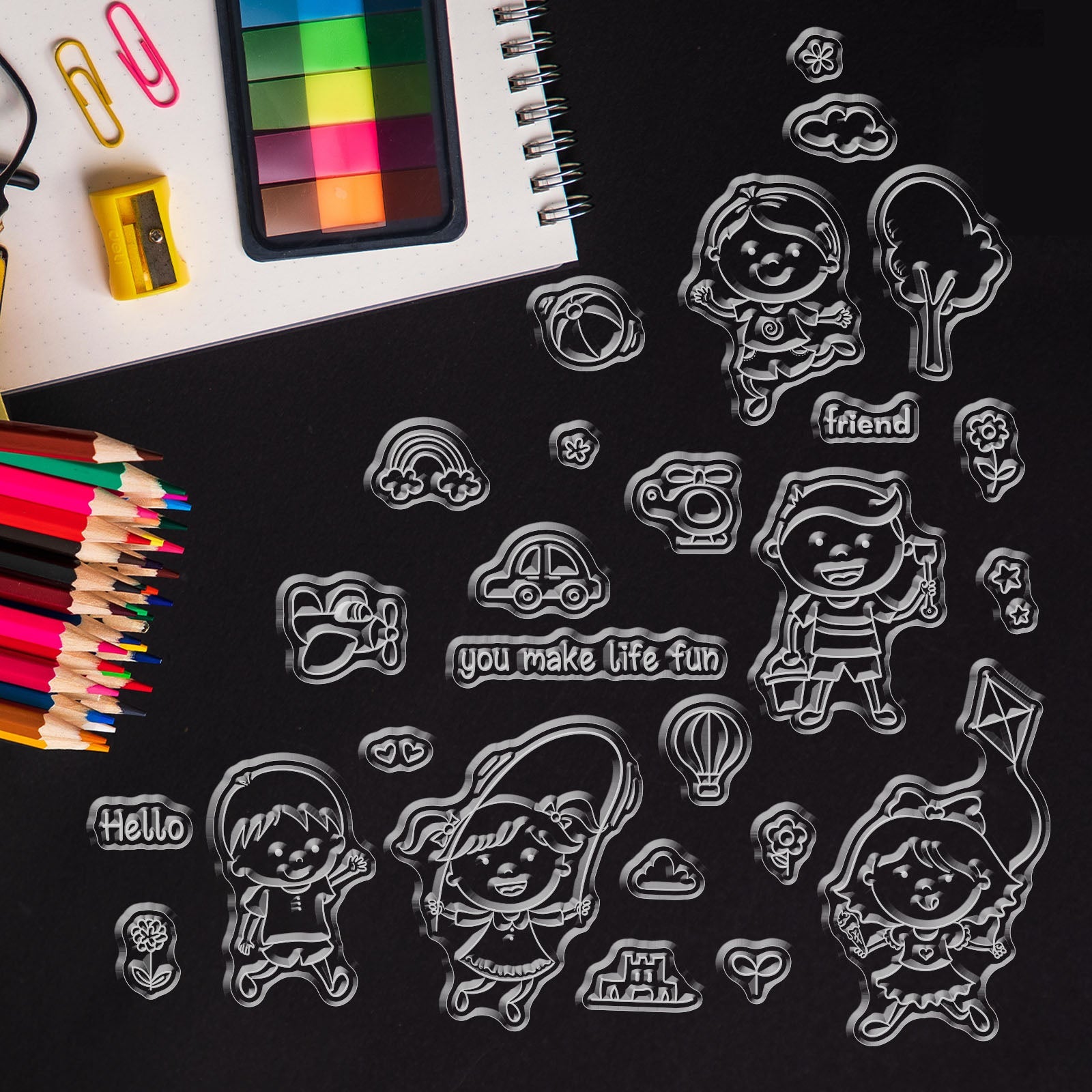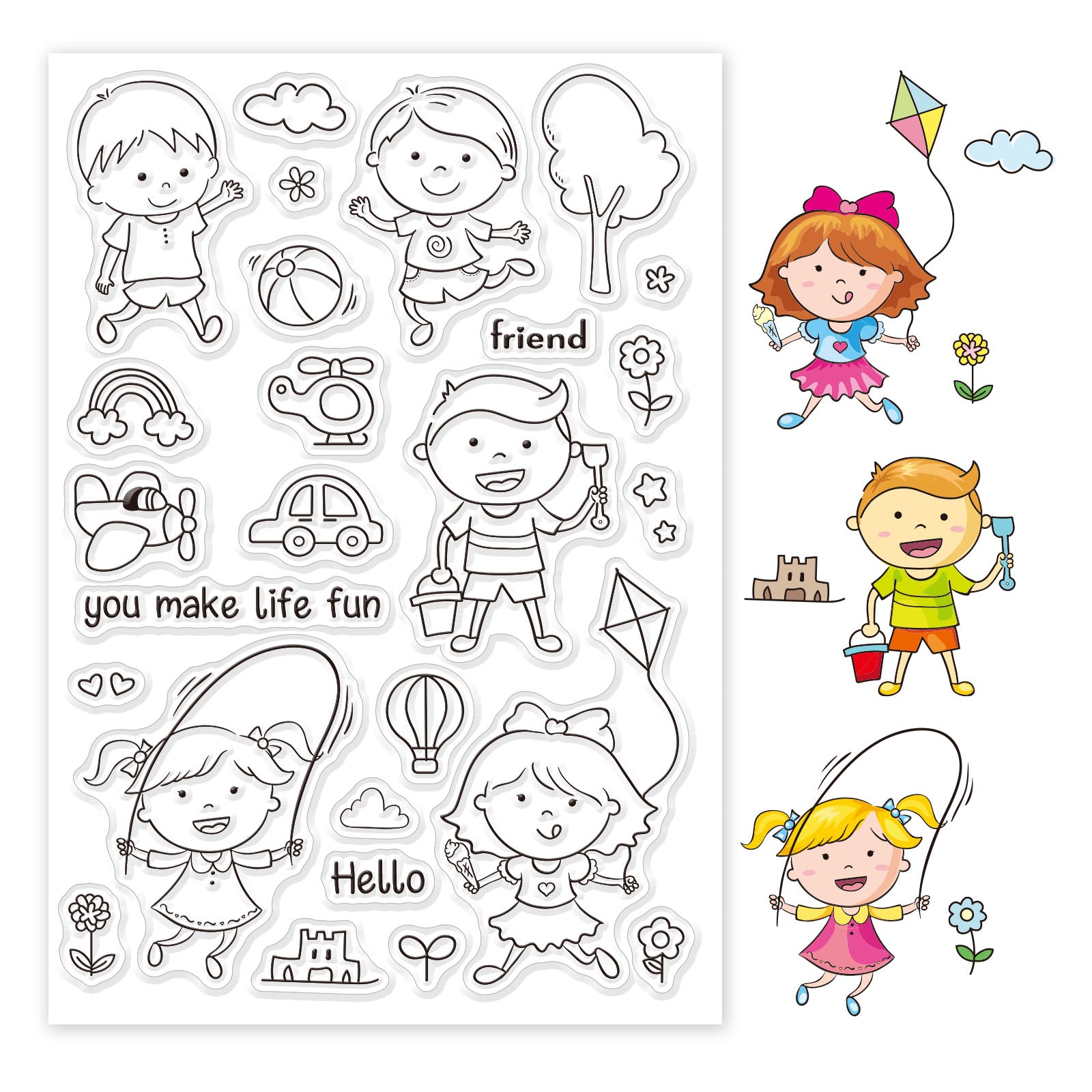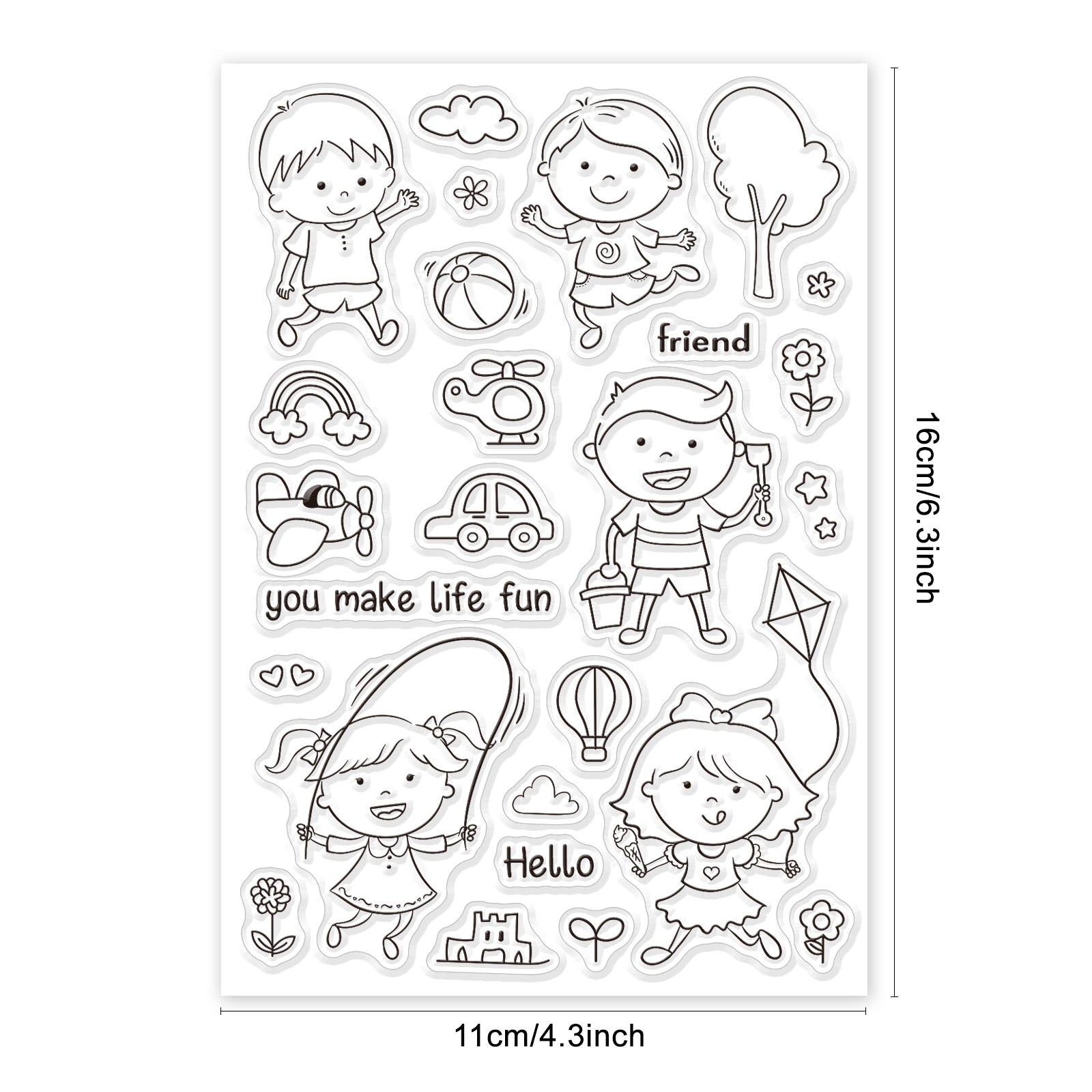 Craspire Happy Kids Boys And Girls, Toys, Sports, Kicking, Kite, Skipping Rope, Kindergarten Clear Silicone Stamp Seal for Card Making Decoration and DIY Scrapbooking