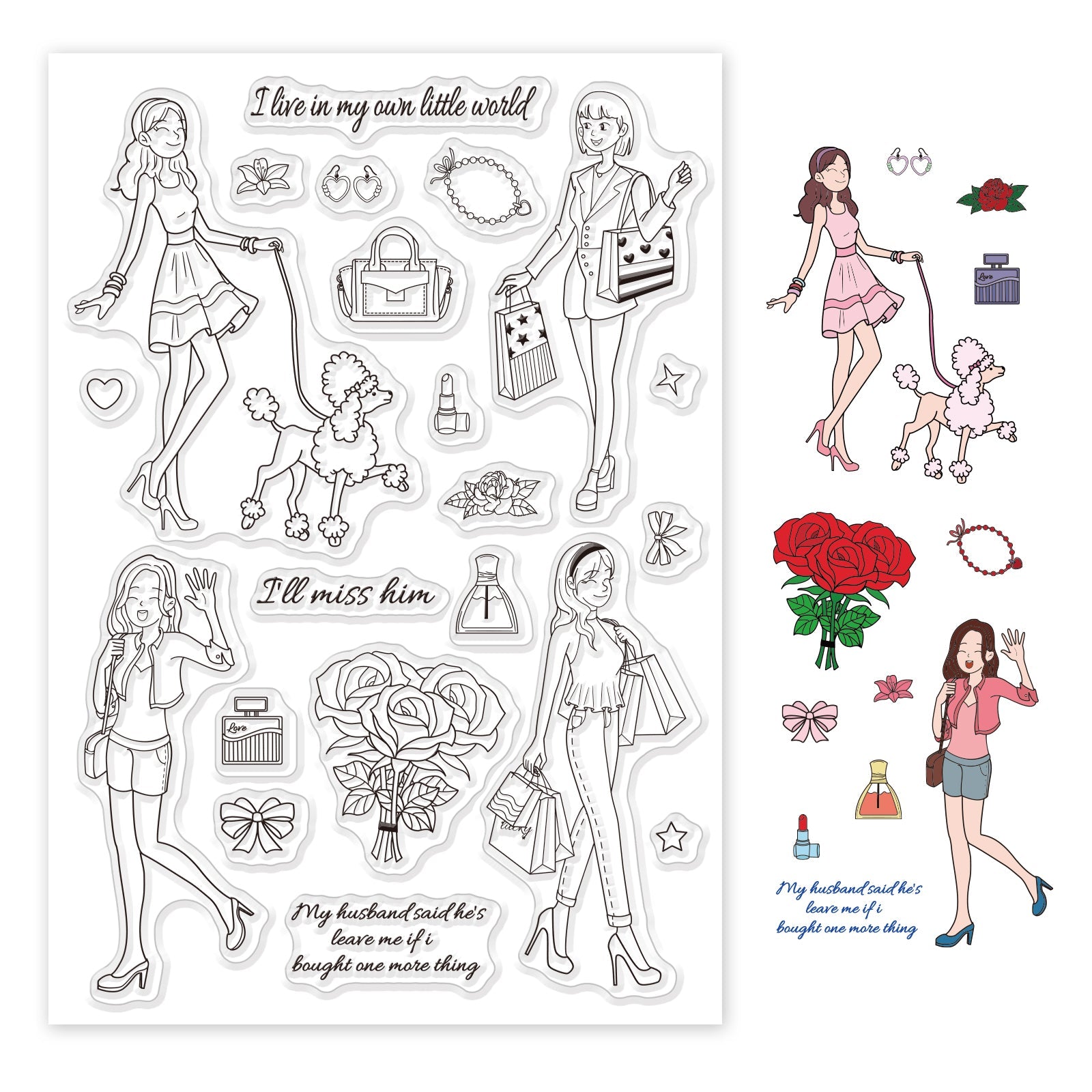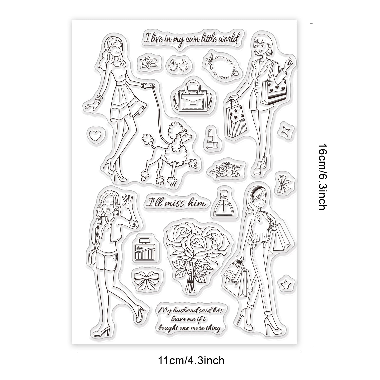 Craspire Shopping Woman, Shopping Woman, Poodle, Bag, Earrings, Necklace, Lipstick, Perfume, Nail Polish, Mushroom, Bow Tie Clear Silicone Stamp Seal for Card Making Decoration and DIY Scrapbooking