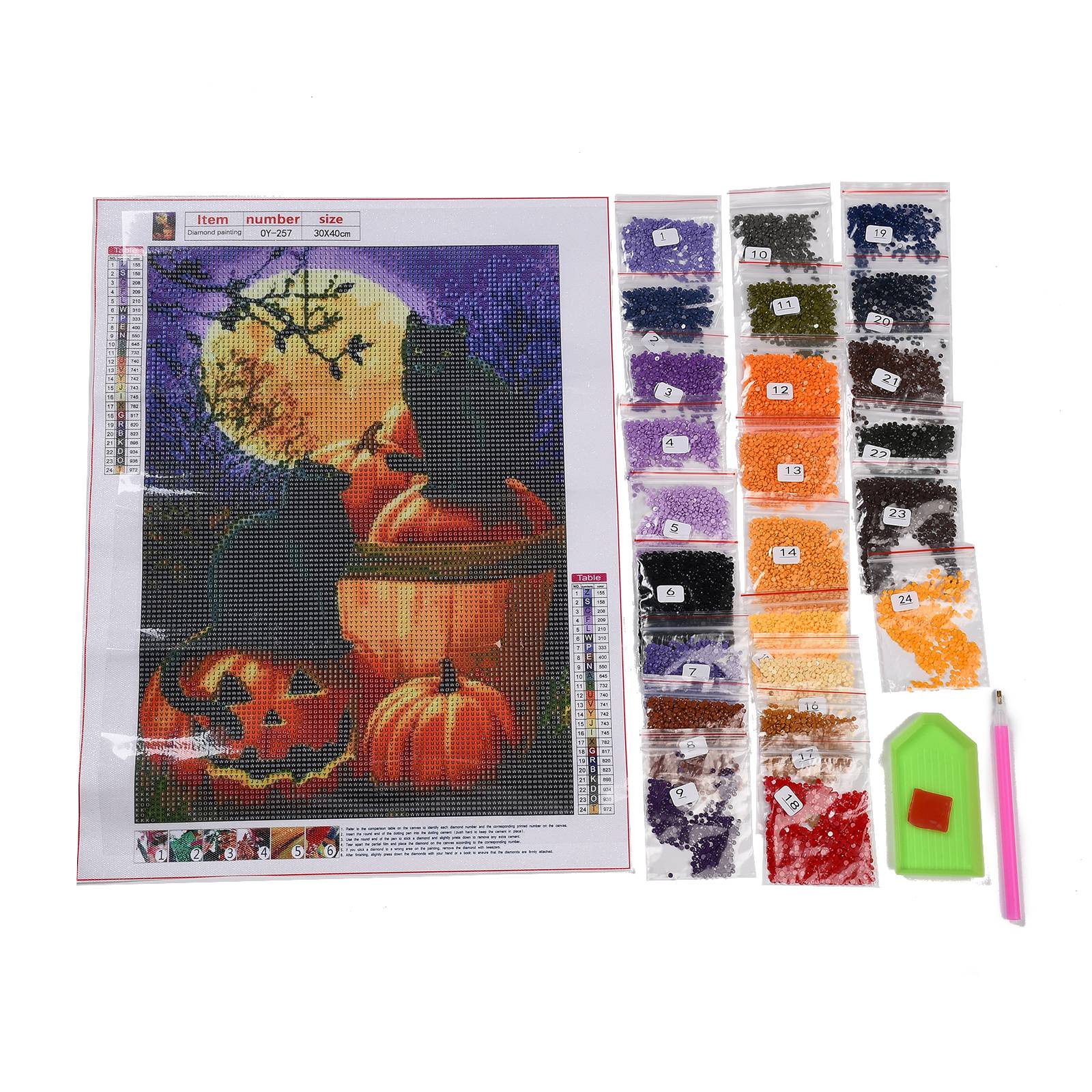DIY 5D Diamond Painting Halloween Canvas Kits, with Resin Rhinestones, Diamond Sticky Pen, Tray Plate and Glue Clay, Halloween Themed Pattern