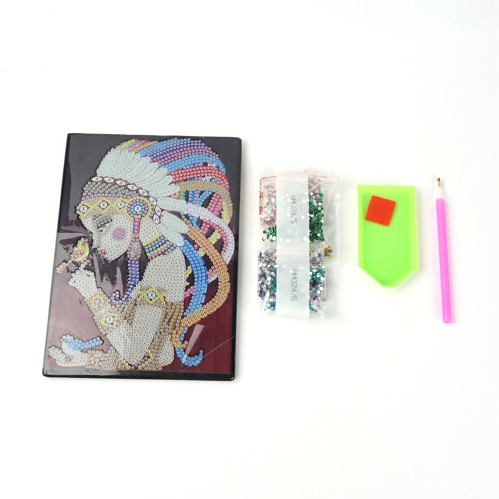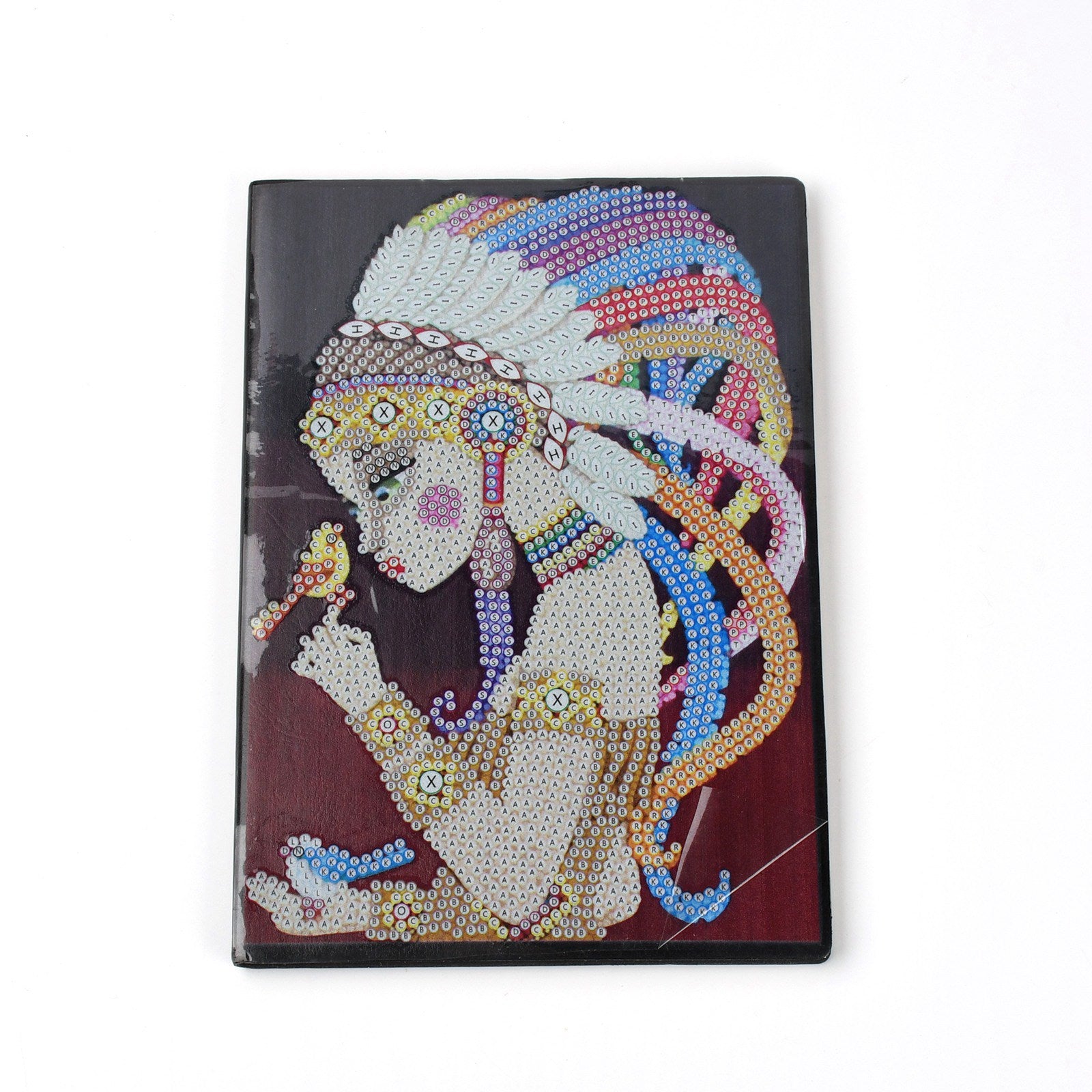 Rectangle DIY Women Pattern Diamond Painting Imitation Leather NoteBook, with Resin Beads, Diamond Sticky Pen, Tray Plate and Glue Clay, Mixed Color