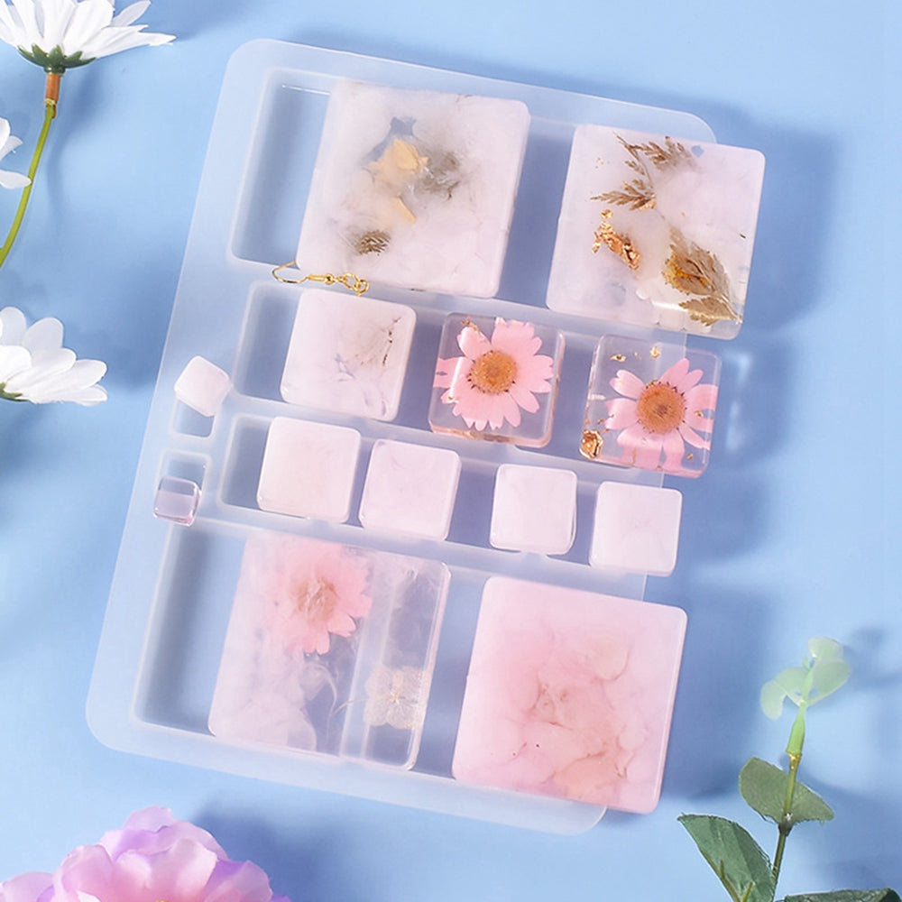 DIY Silicone Cabochons Molds, Resin Casting Molds, for UV Resin, Epoxy Resin Jewelry Making, Square Pattern