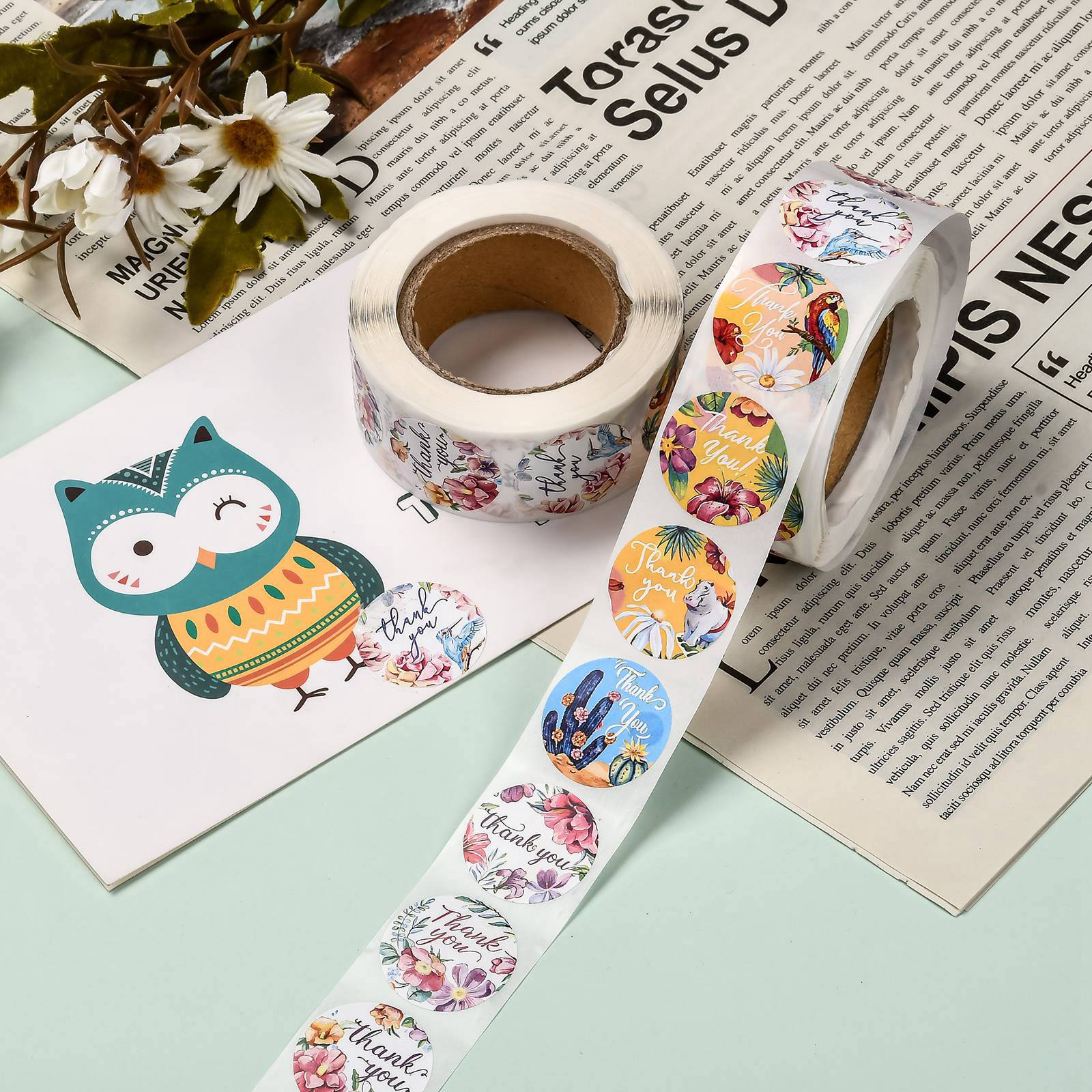 Craspire DIY Scrapbook, 1 Inch Thank You Stickers, Decorative Adhesive Tapes, Flat Round with Flower & Word Thank You, Colorful, 25mm, about 500pcs/roll, 5rolls/set