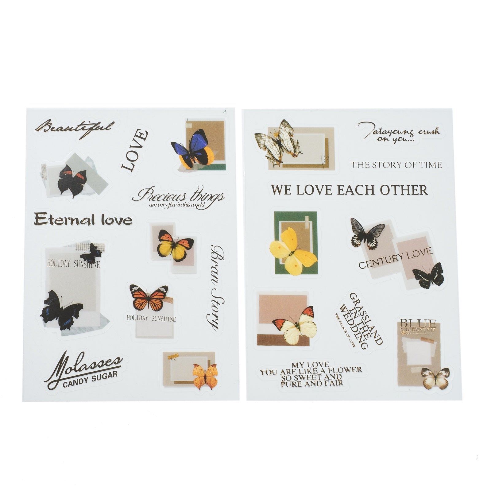Craspire Plastic Decorations Stickers, for DIY Handmade Scrapbook Photo Albums, Butterfly Pattern, 15x10.5x0.02cm, 2sheet/set, 10sets/pack