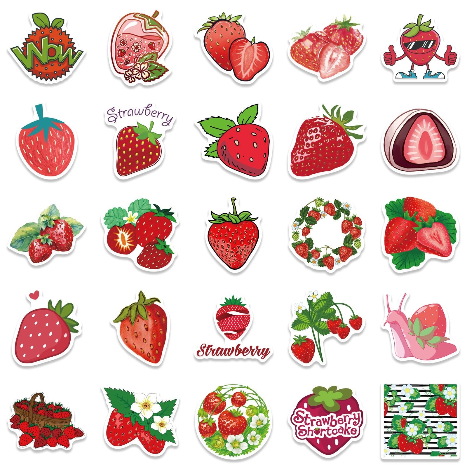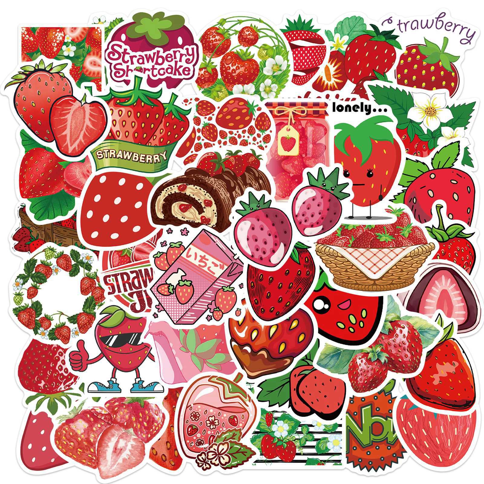 Craspire Waterproof PVC Plastic Sticker Labels, Self-adhesion, for Water Bottles, Laptop, Luggage, Cup, Computer, Mobile Phone, Skateboard, Guitar Stickers, Strawberry Pattern, 3~6cm, 50pcs/bag